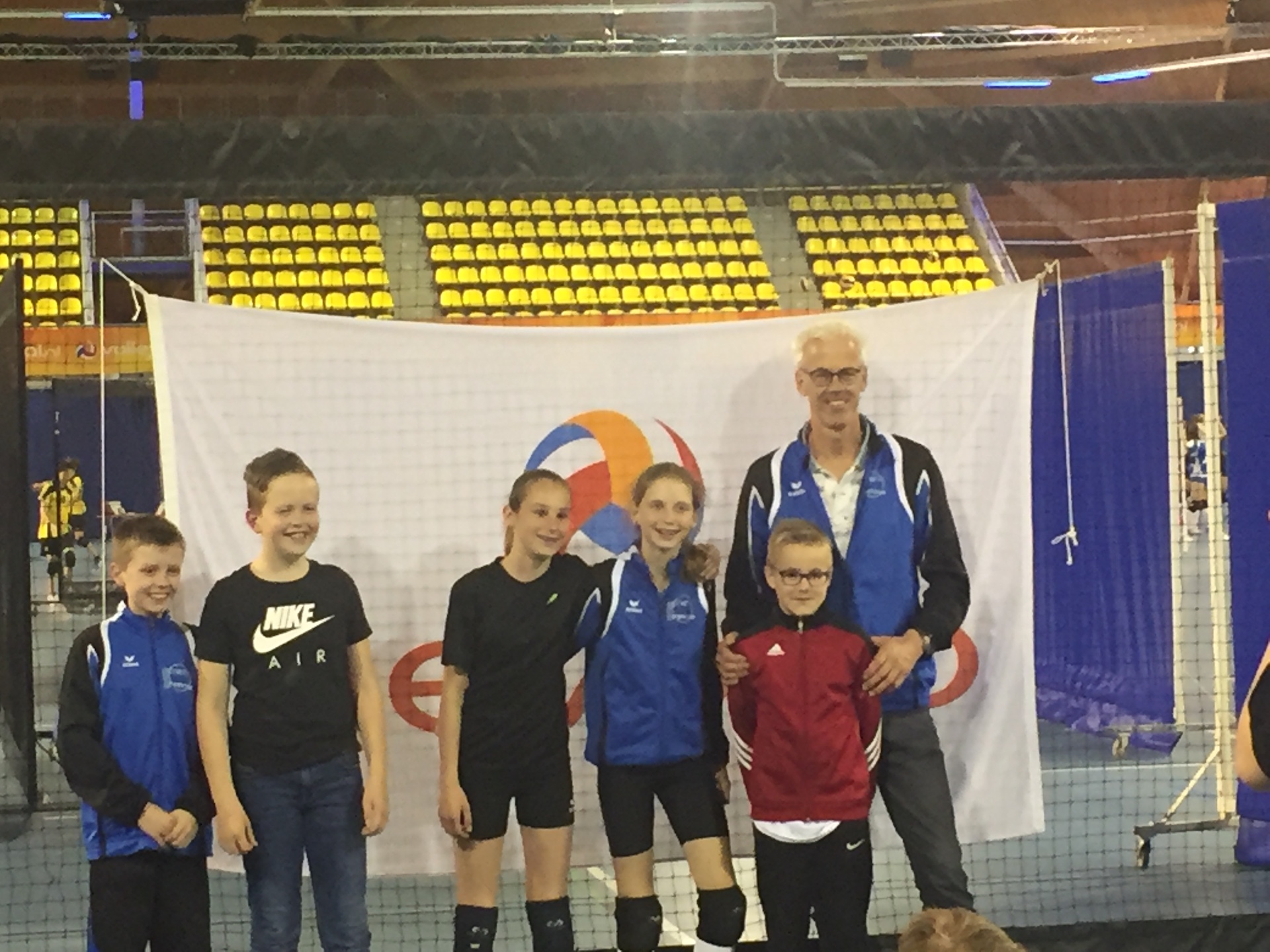 De voorgaande wedstrijd had echter zo’n mentale dreun uitgedeeld aan de spelers dat ze deze wedstrijd uiteindelijk nipt verloren. Door 2 verliespartijen in de halve finale moesten we tenslotte nog spelen om de 5e en 6e plaats tegen volley2B uit Bergschenhoek. De eerste set zaten de verloren wedstrijden van de halve finale nog tussen de oren van de spelers. Deze werd dus ook verloren. Tijdens de 2e set kwamen spelers en supporters van MB1 de hal in. De meiden B1 moesten in dezelfde hal de wedstrijd spelen tegen Voltena voor het top klasse kampioenschap zuid Nederland. Vanaf dat moment werd het team van Fortutas van alle kanten aangemoedigd en kregen de spelers spreekwoordelijk vleugels. Met sprankelend en bevlogen volleybal werd de 2e en daarna ook de 3e set gewonnen. Hierdoor bereikte het team een prachtige 5e plaats. Het team bestaat uit Roby, Bente, Sven, Dennis en Tijn.