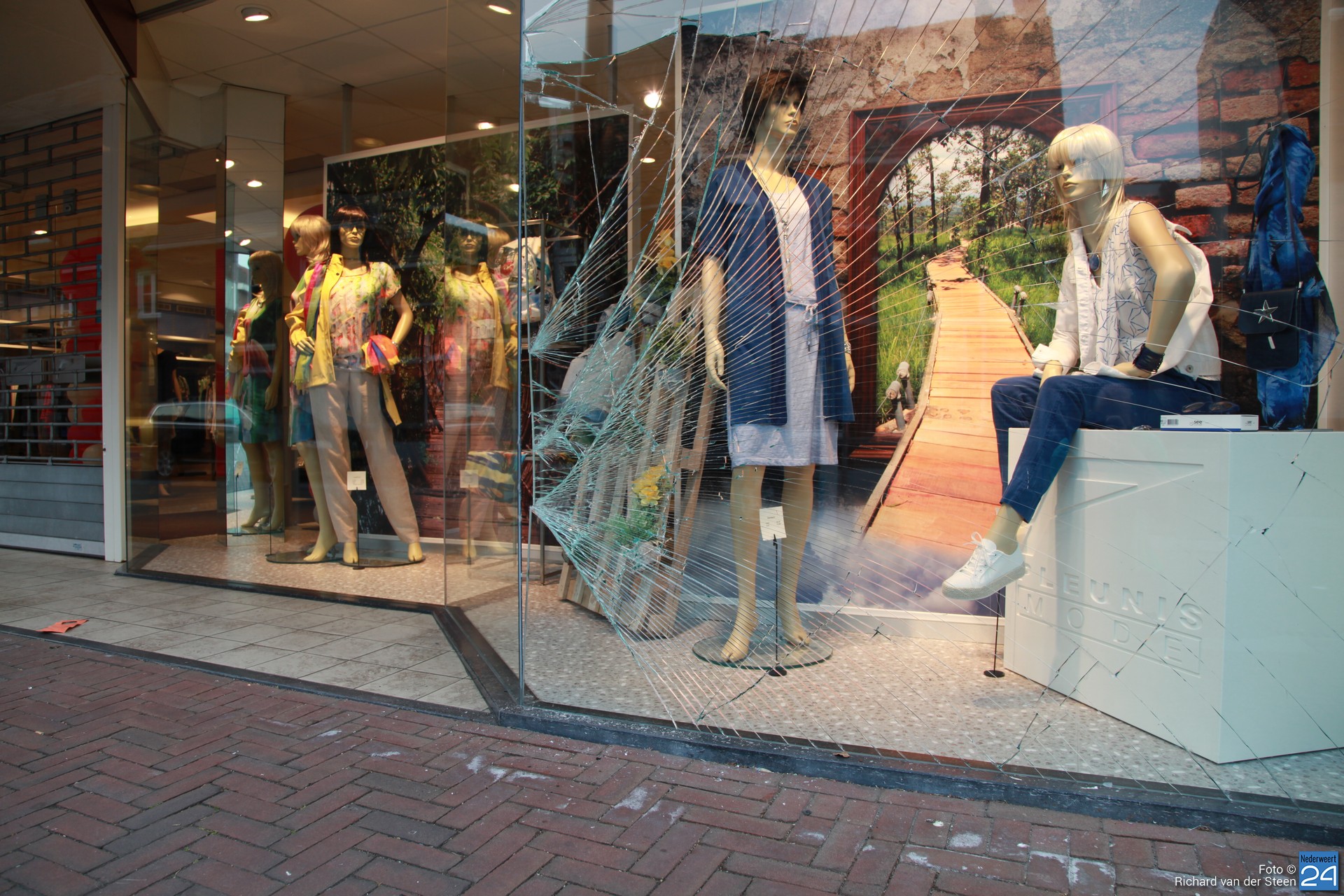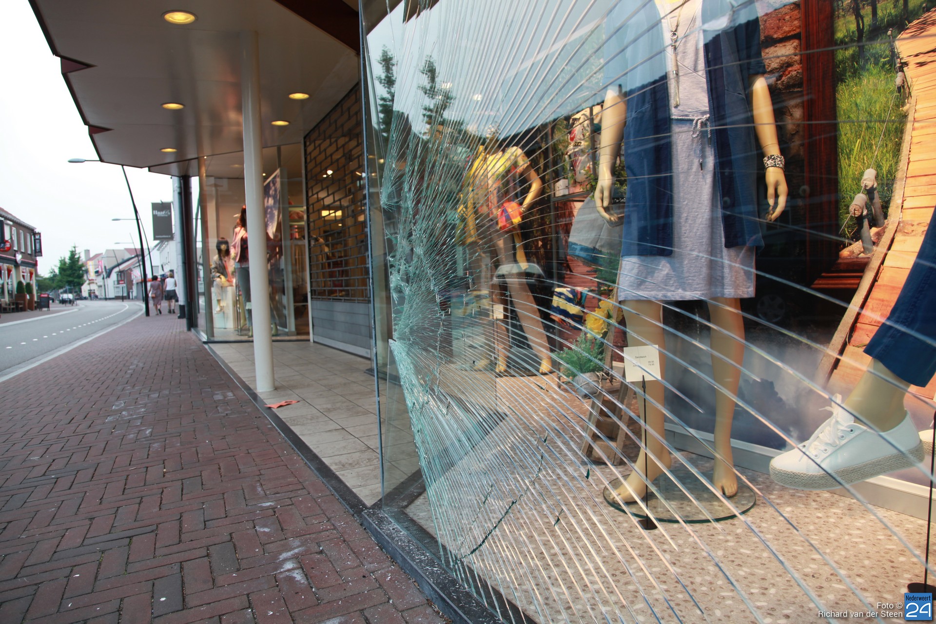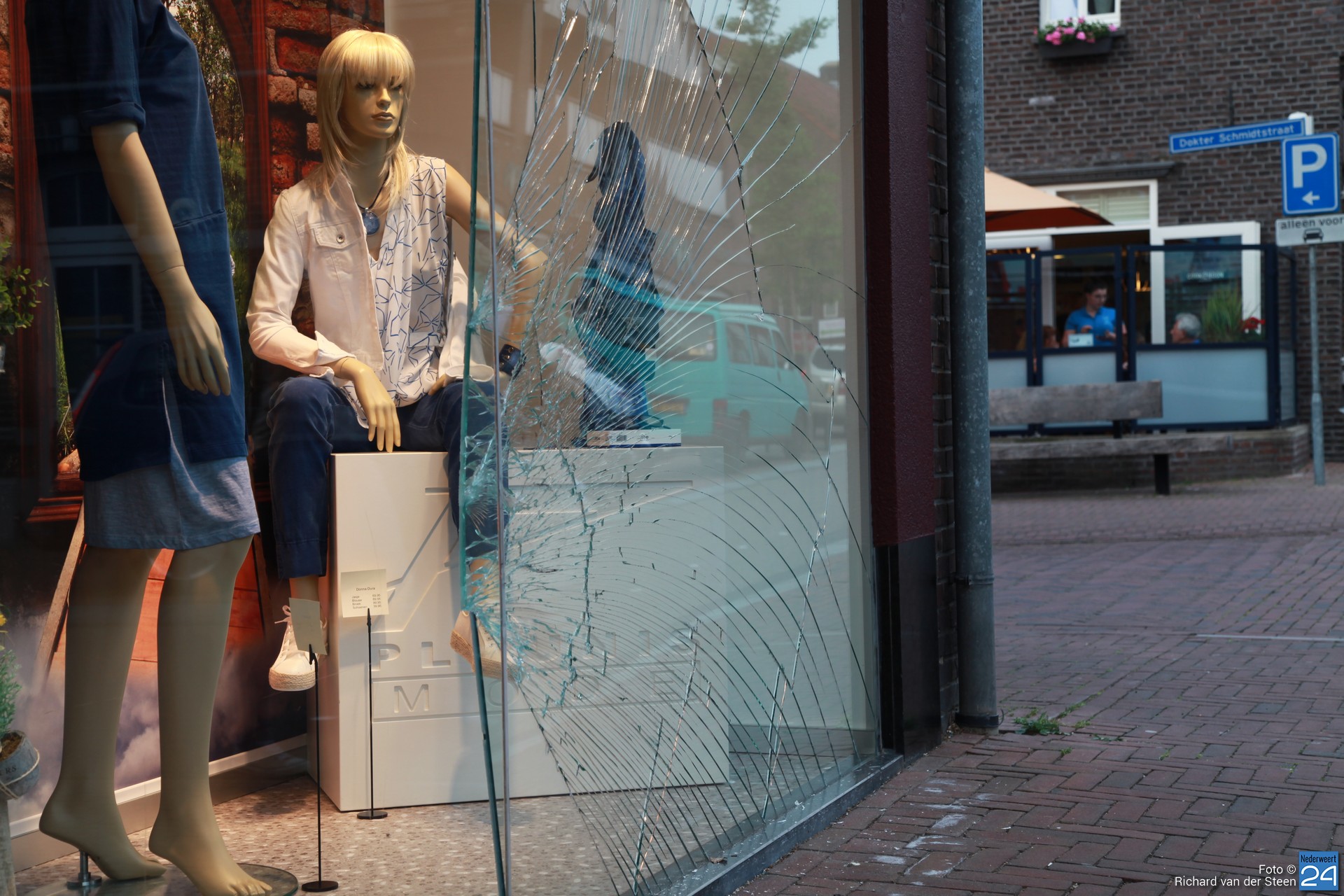 Maandagavond is een busje achteruit gerold tegen de etalageruit van Pleunis Mode in de Brugstraat in Nederweert. De etalageruit is daarbij flink beschadigd.