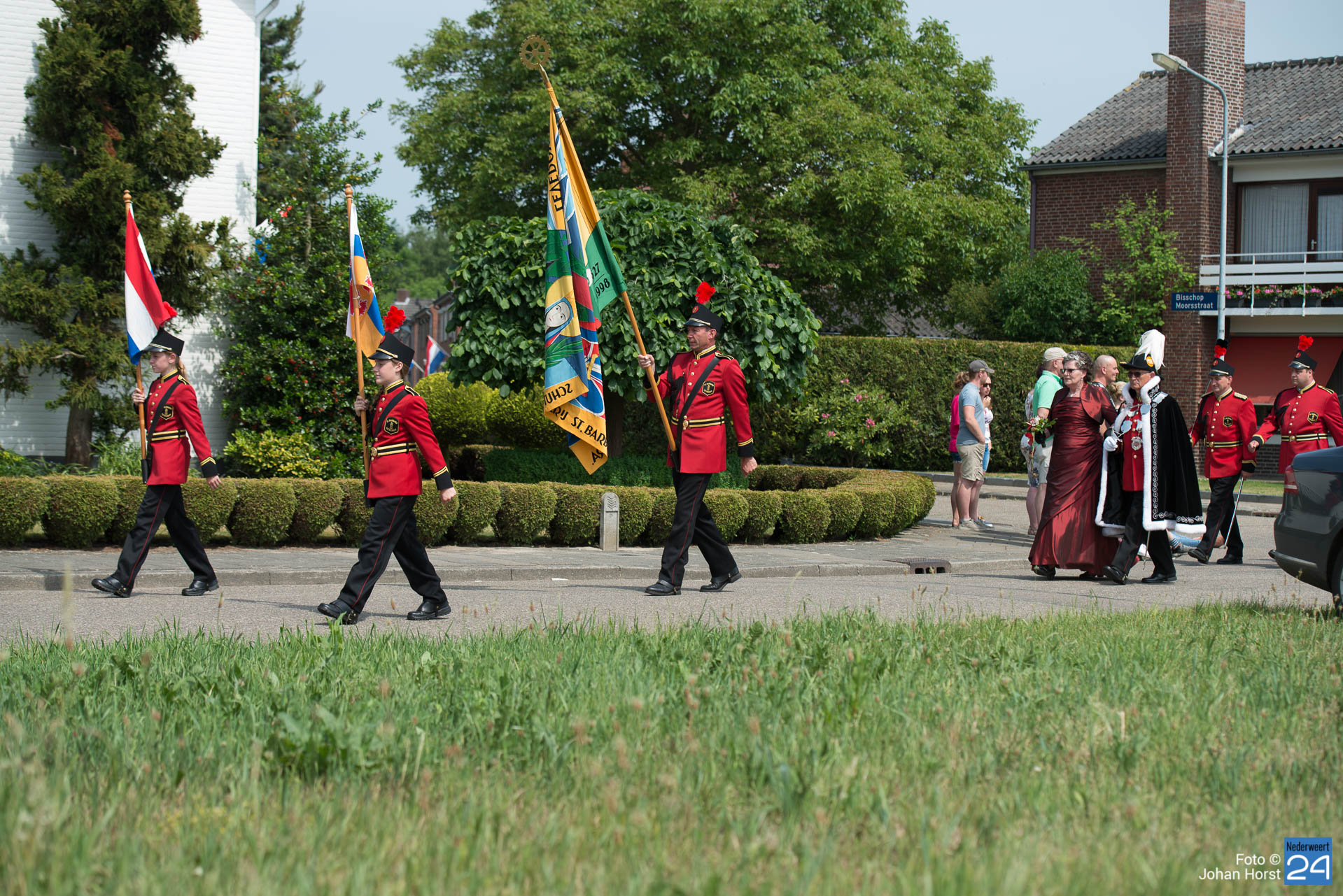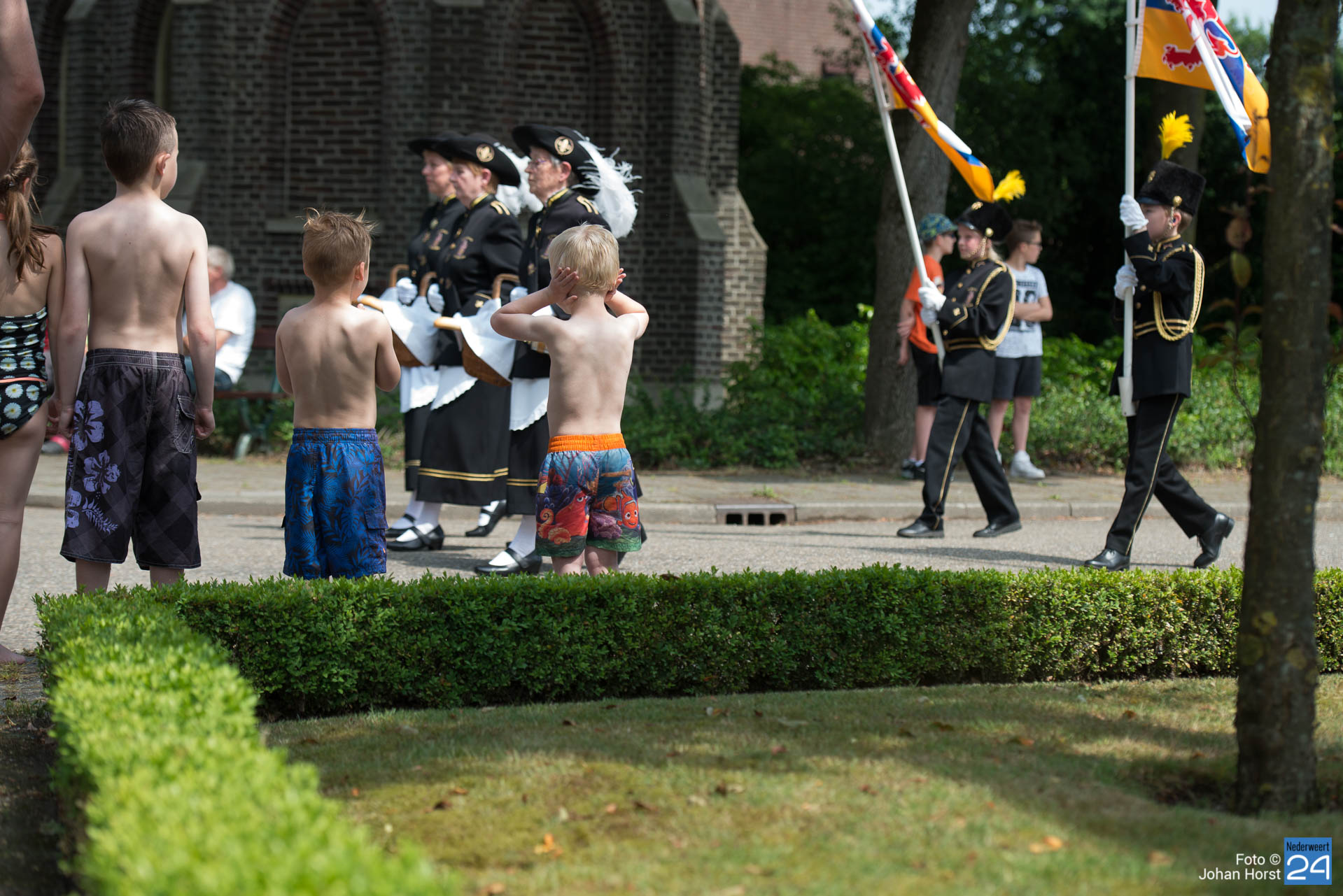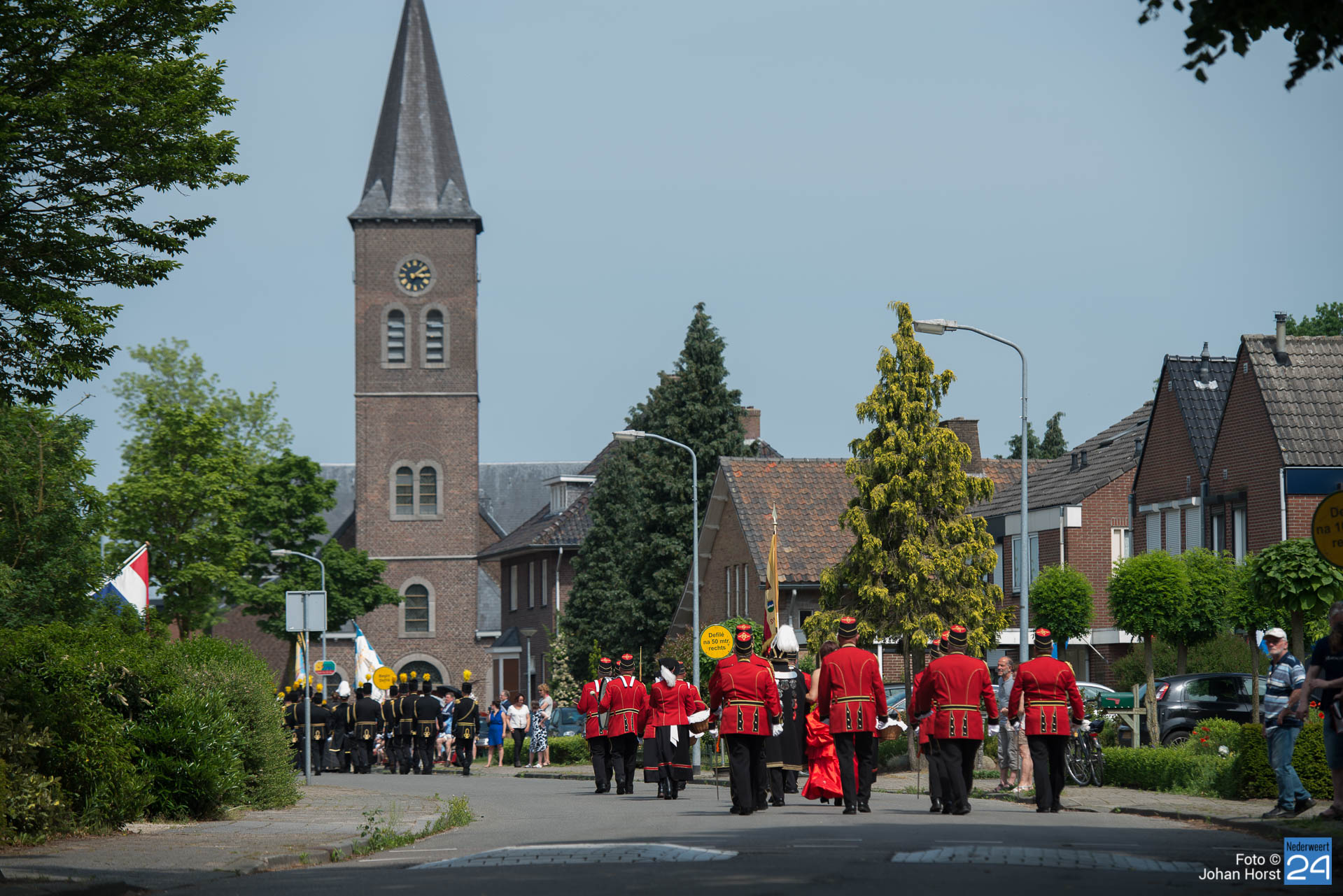 Schutterij St Barbara vierde haar gouden jubileum met een schuttersfeest in Tungelroy. voor de bond EMM was het alweer het 381e schuttersfeest. Ook de verenigingen uit Nederweert trotseerden de warmte en zetten hun beste beentje voor. Direct na de optocht is een plekje in de schaduw met verfrissend water erg welkom.
