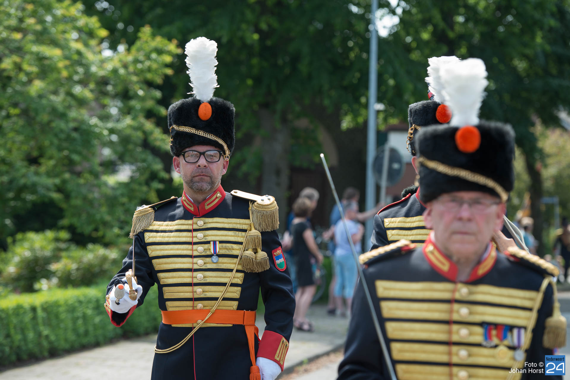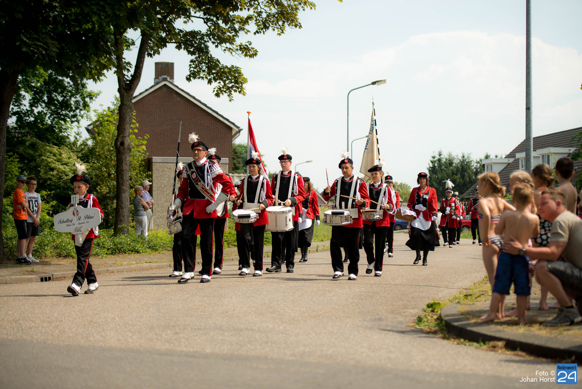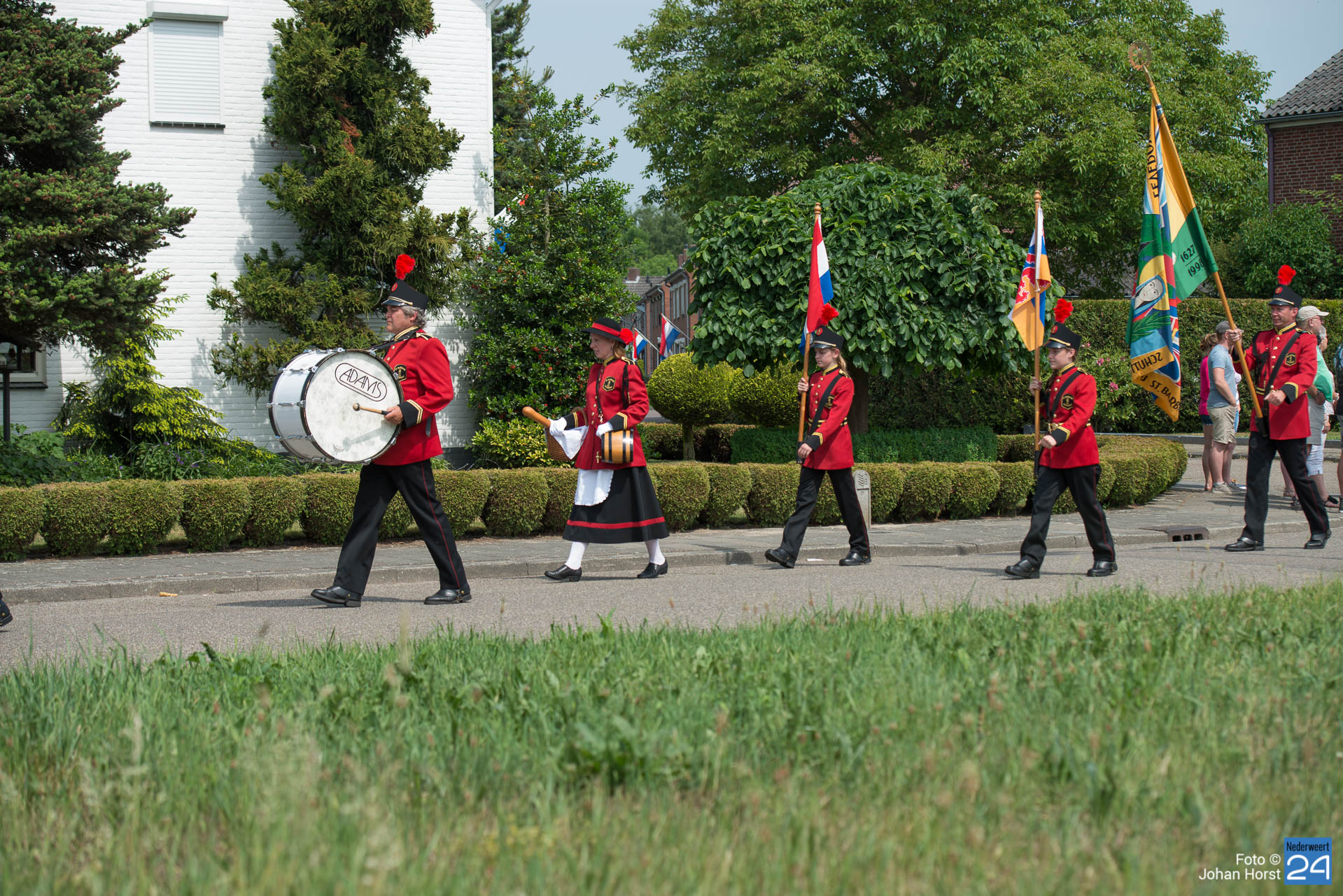 Schutterij St Barbara vierde haar gouden jubileum met een schuttersfeest in Tungelroy. voor de bond EMM was het alweer het 381e schuttersfeest. Ook de verenigingen uit Nederweert trotseerden de warmte en zetten hun beste beentje voor. Direct na de optocht is een plekje in de schaduw met verfrissend water erg welkom.