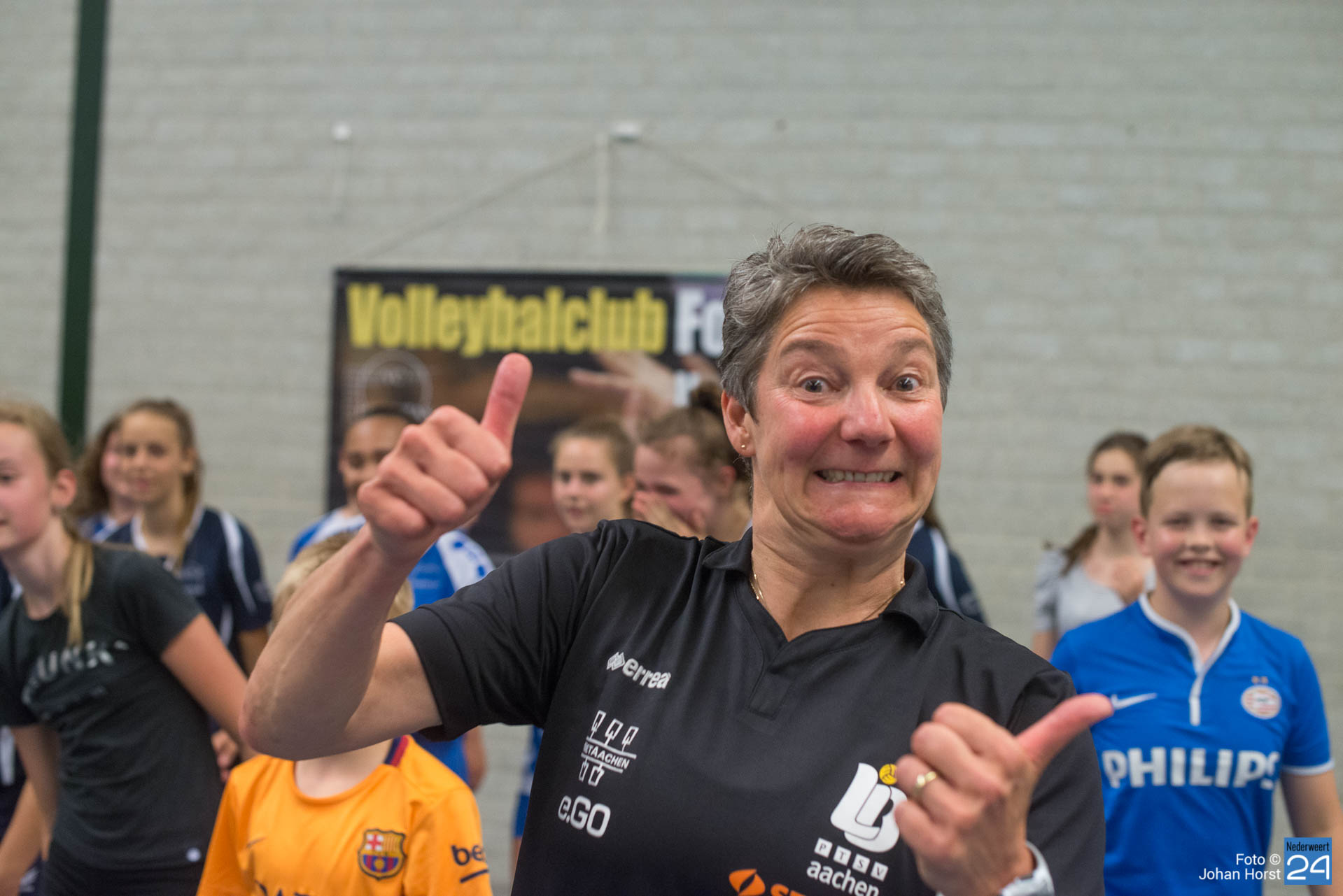 De training van Fortutas in de Bengele was maandagavond heel anders dan andere trainingen. Er was een speciale gast aanwezig die een workshop/clinic verzorgde. Saskia van Hintum, oud international en top coach van ‘Ladies in Black Aken’ gaf twee volleybal clinics in Sporthal de Bengele. Al snel blijkt dat een goed spel volley veel meer vraagt dan alleen de bal spelen. Om het spel goed te kunnen spelen is het nodig om helder te communiceren en tegelijkertijd met het spelen te analyseren wat er staat te gebeuren. Kortom Volleybal is meer dan een balletje over het net slaan.