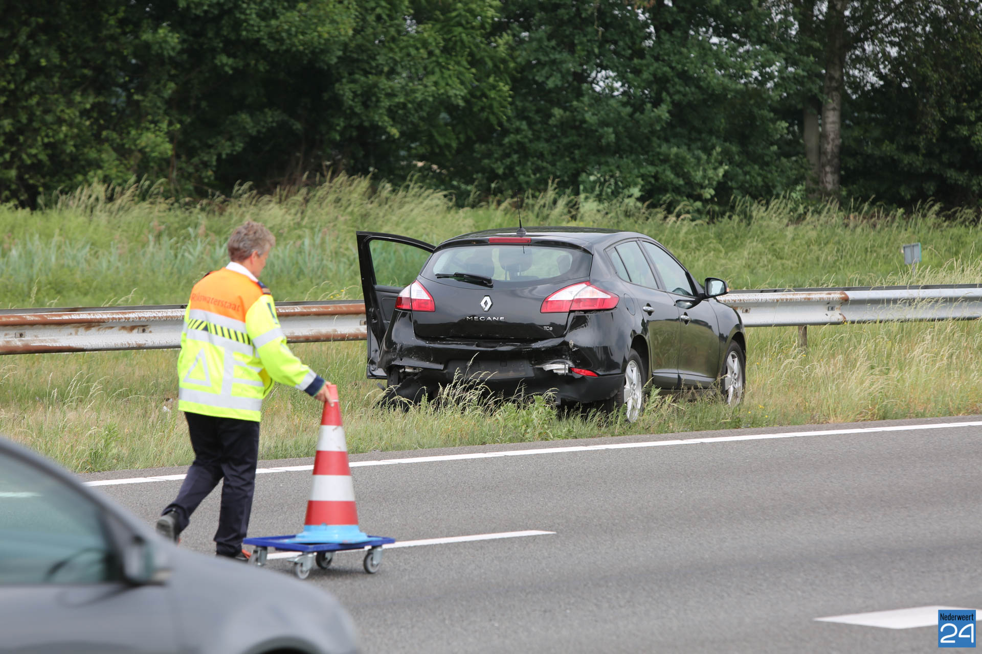 Zaterdagmiddag zijn twee auto’s met elkaar in botsing gekomen op de A2 bij Nederweert in zuidelijke richting. Hierbij raakte niemand gewond.