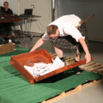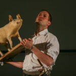 Vrijdagavond waren Lucas De Man en Johan Dehollander bij ons boerenerf om het theaterstuk ‘Wij Varkenland‘ te spelen. Een solo over Stijn, een jongen van 30 jaar die na 12 jaar rondtrekken in de wereld terugkeert naar zijn geboorte streek. Zijn ouders waren varkensboeren, zijn broer heeft de boerderij overgenomen, hij zelf wou ridder zijn.