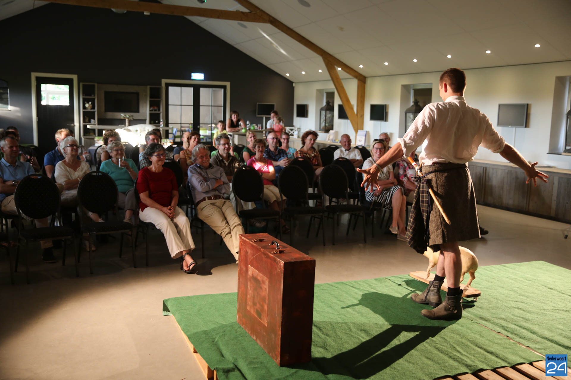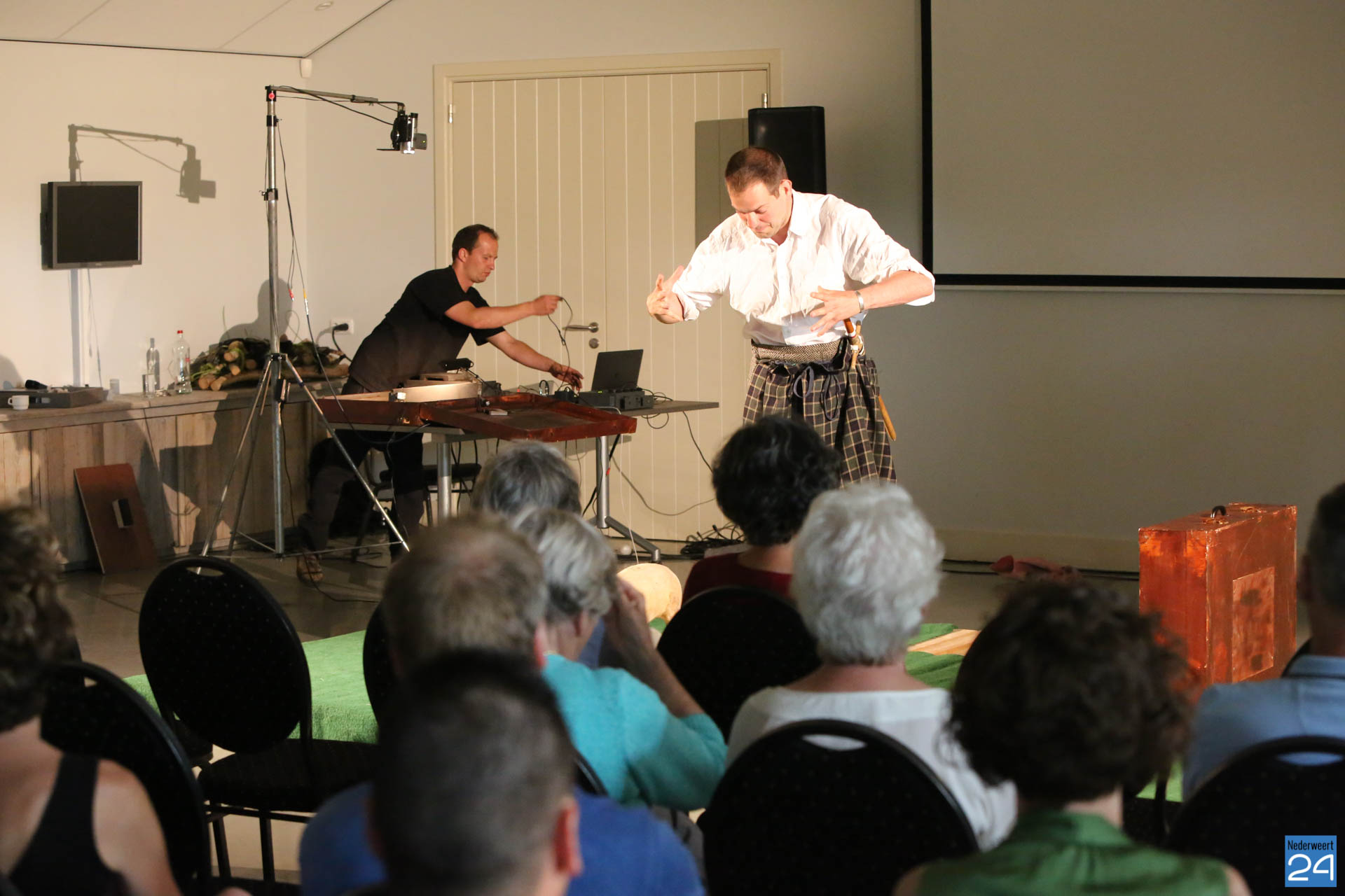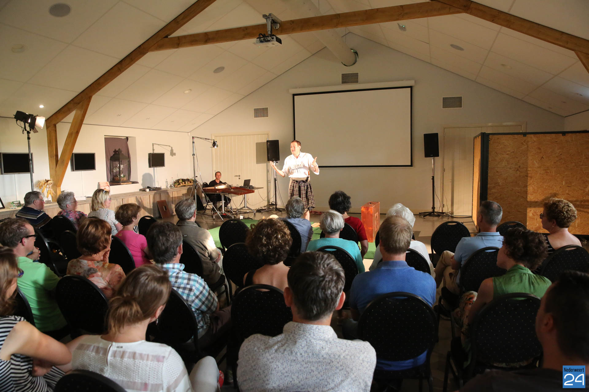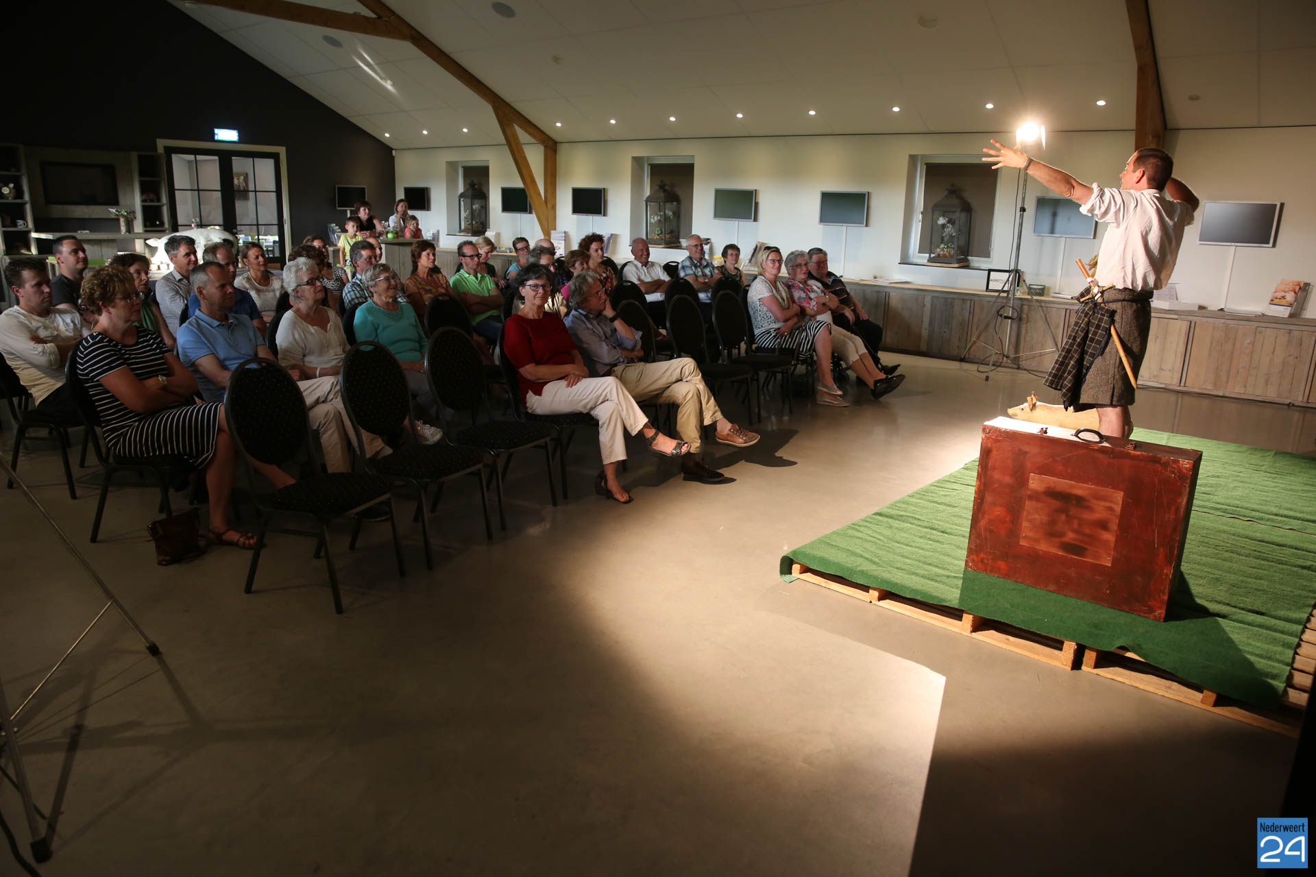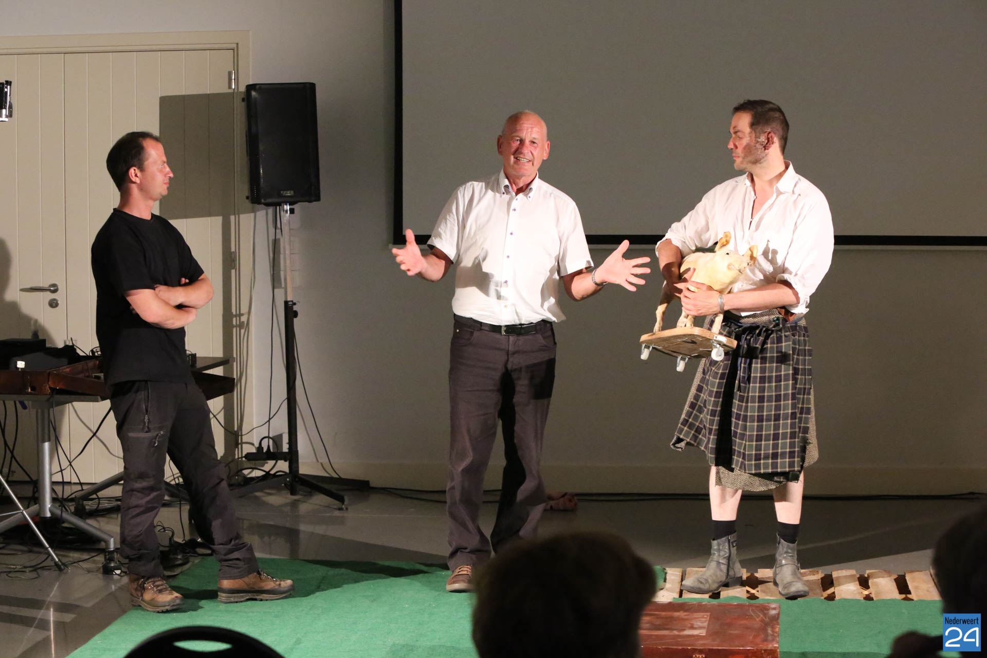 Ruim 30 geïnteresseerde waren op de voorstelling afgekomen. Het publiek was met tijd en wijlen muis stil vanwege de vele herkenningspunten in de van oudsher agrarische gemeente Nederweert. Aad van Leeuwen was na afloop erg enthousiast over het stuk. “Ik zit al heel mijn leven in de sector dus ik herken hier veel van” aldus Aad. Hij bedankte de aanwezig en natuurlijk Lucas en Johan voor het prachtige optreden.