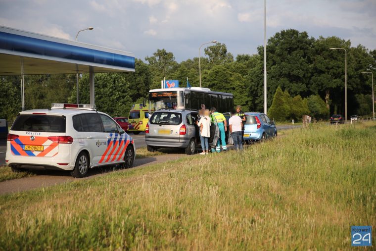 Zondagavond is een personenauto achter op een rij stilstaande auto’s gereden op de Rijksweg (N280) in Baexem. Het voorste voertuig in de rij wilde linksaf slaan naar het tankstation.