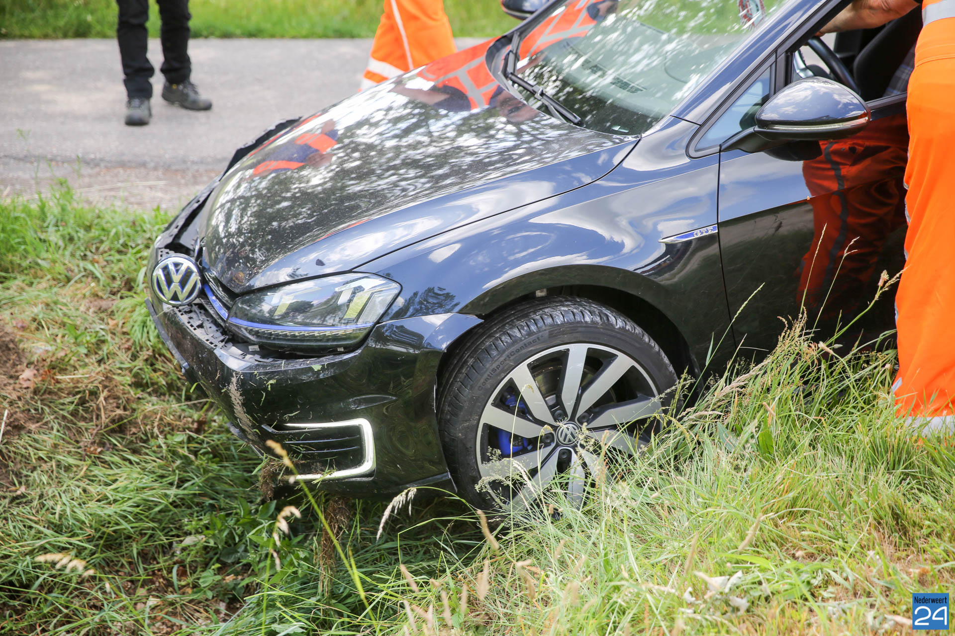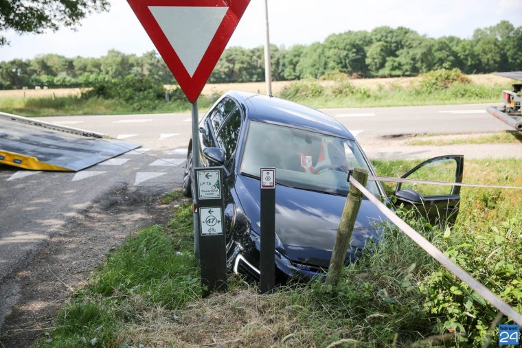 Vrijdagmiddag is een auto in de sloot terecht gekomen op de t-splitsing Roermondseweg (N280) en de Graetheideweg in Kelpen-Oler. De bestuurder kwam met de schrik vrij.