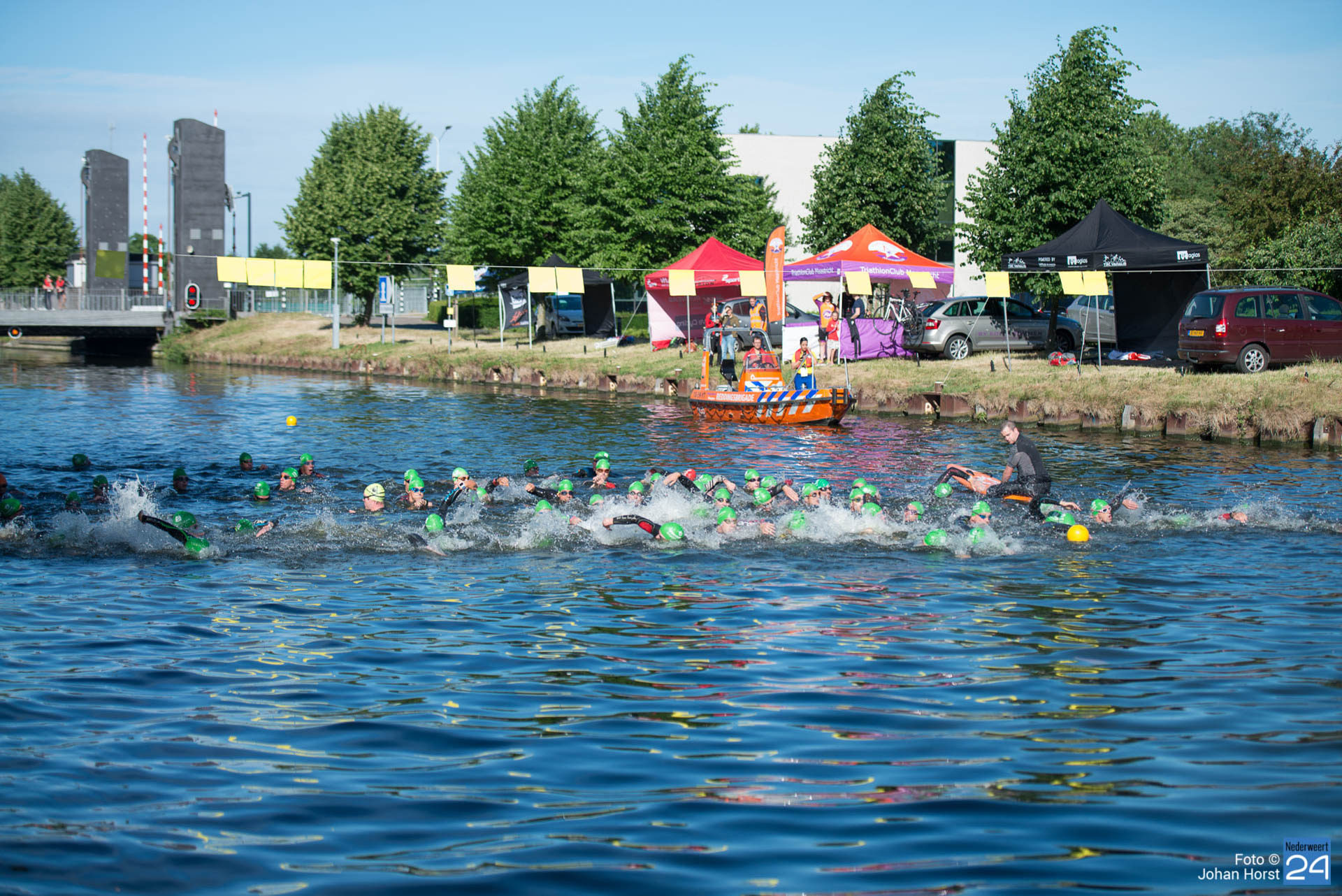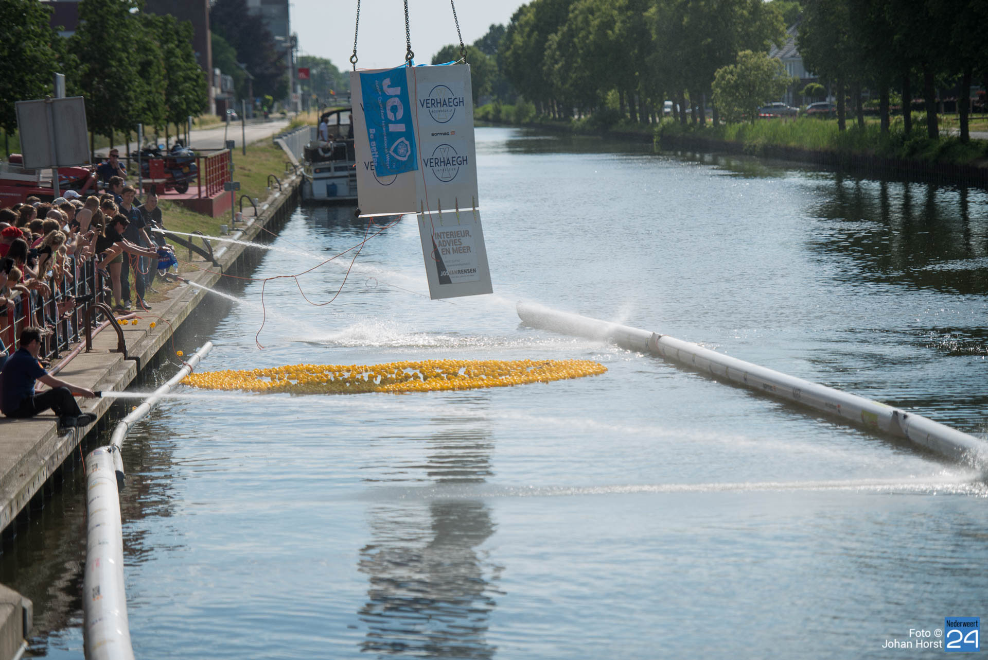 Naast deze triathlon wedstrijden ging er nog een hele andere groep voor roem! Er was namelijk de Duckrace op de Zuid-Willemsvaart. Onder muzikale begeleiding van de Weerter live band De Bènt barste de strijd los.