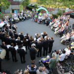 De stoet van 52 rollers en ongeveer 90 vrijwilligers werd op het einde opgewacht door harmonie Sint Joseph Nederweert. Onder muzikale begeleiding werden de laatste meters tot aan het zorgcentrum volbracht. Daar werd iedereen onthaalt door een muzikale haag.