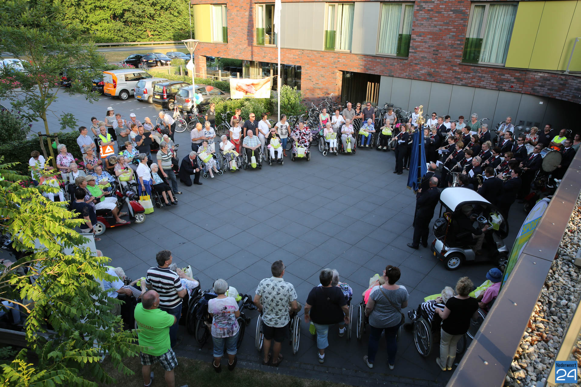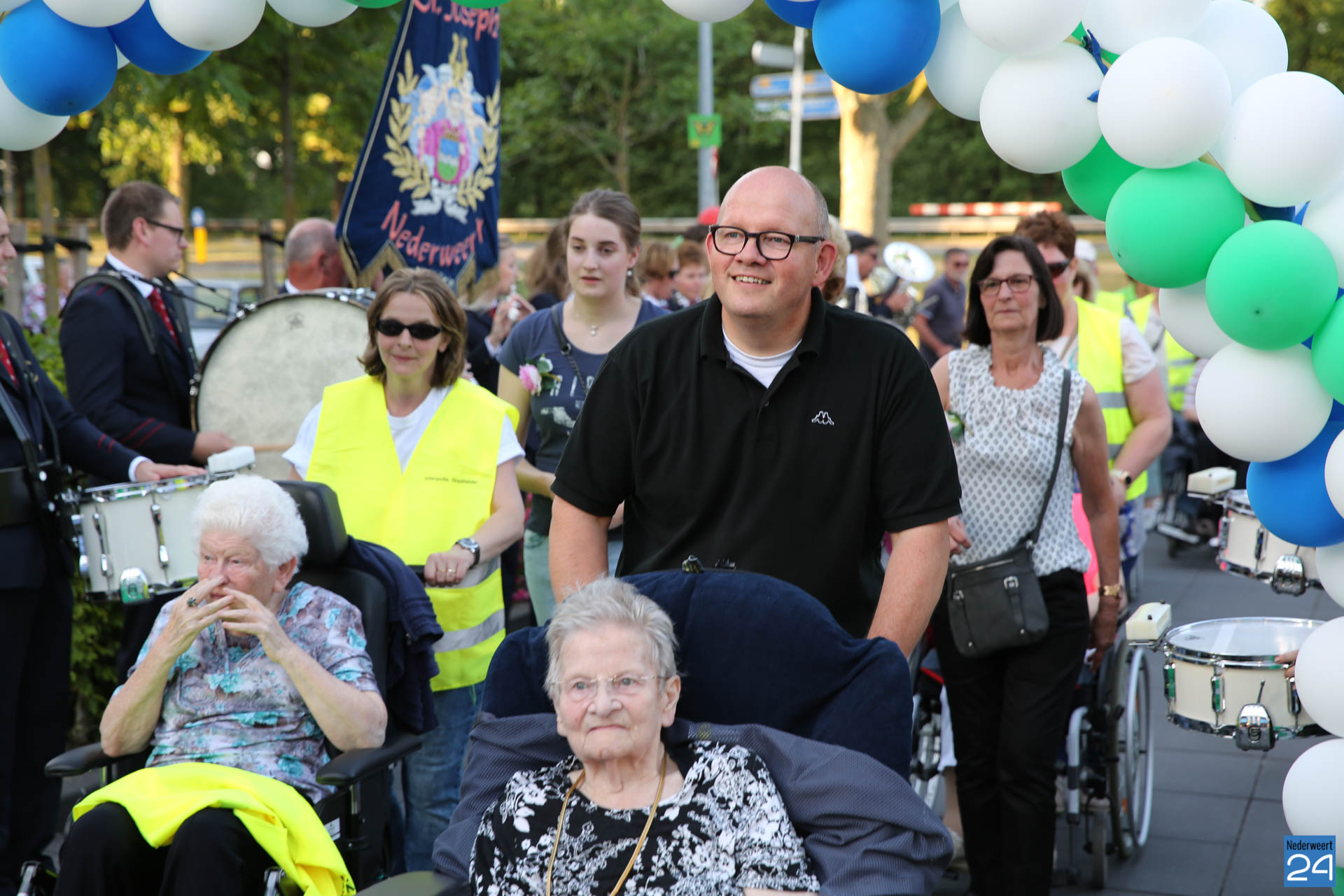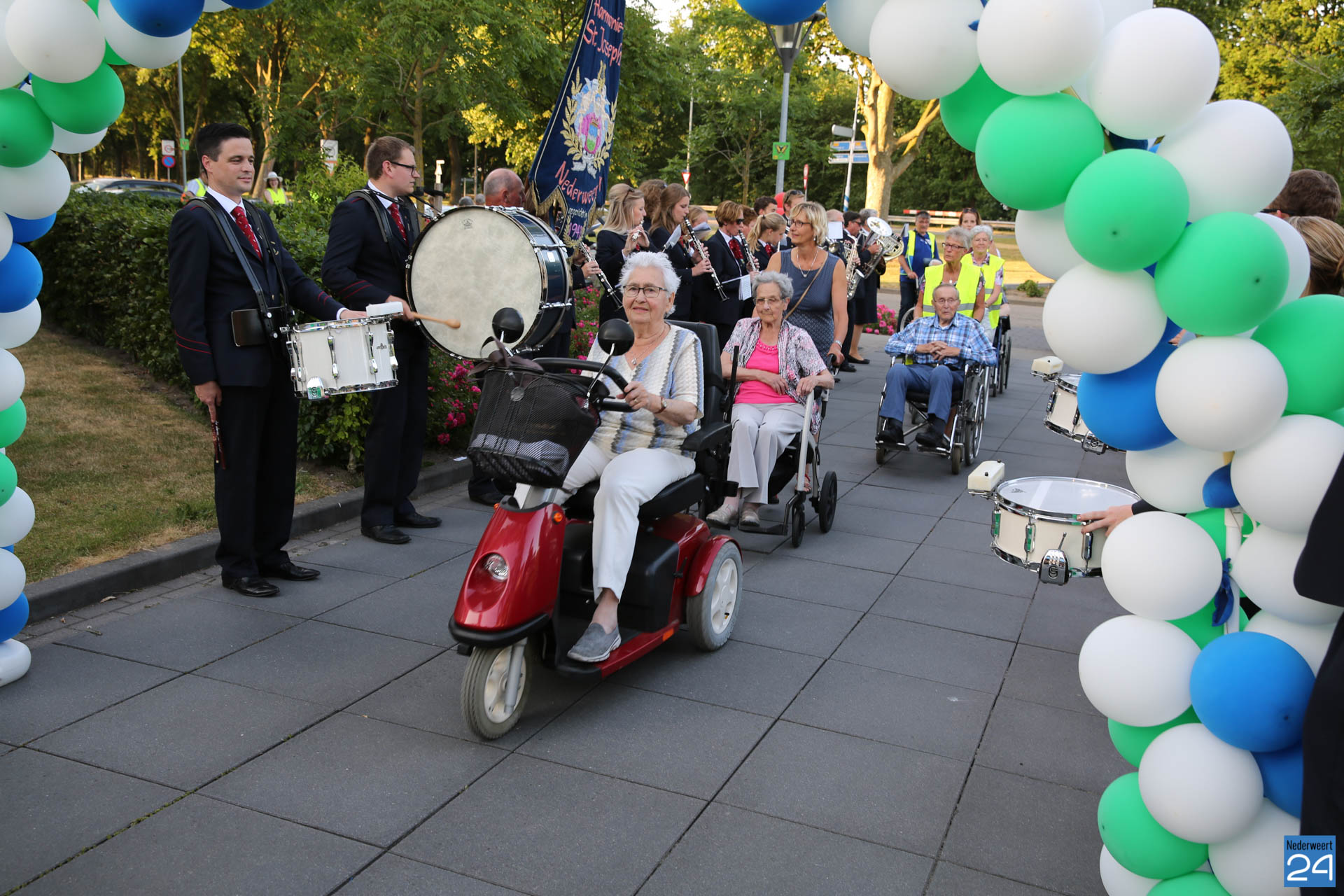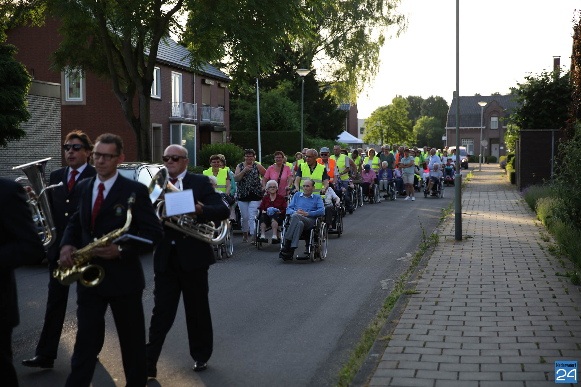 De stoet van 52 rollers en ongeveer 90 vrijwilligers werd op het einde opgewacht door harmonie Sint Joseph Nederweert. Onder muzikale begeleiding werden de laatste meters tot aan het zorgcentrum volbracht. Daar werd iedereen onthaalt door een muzikale haag.