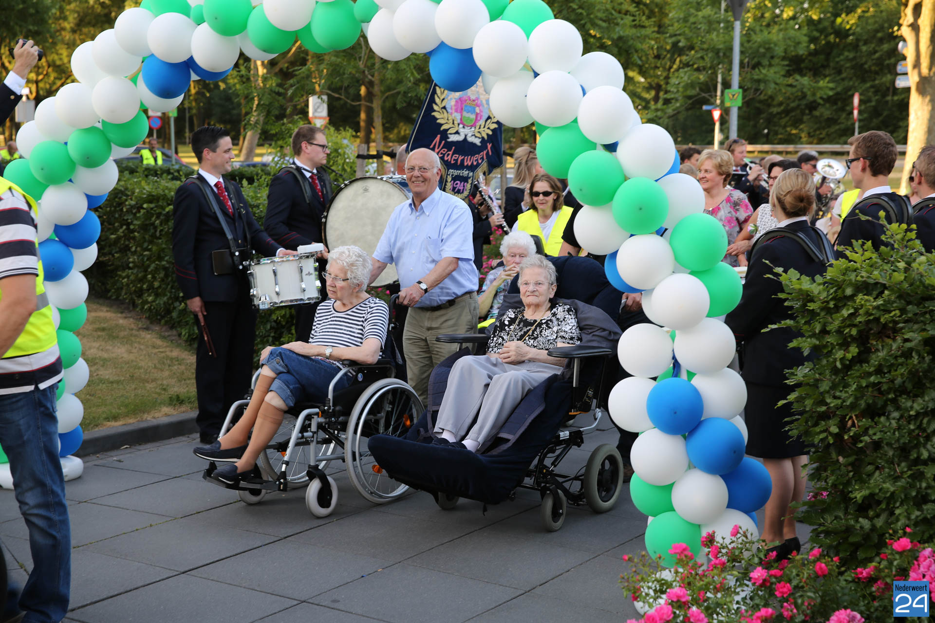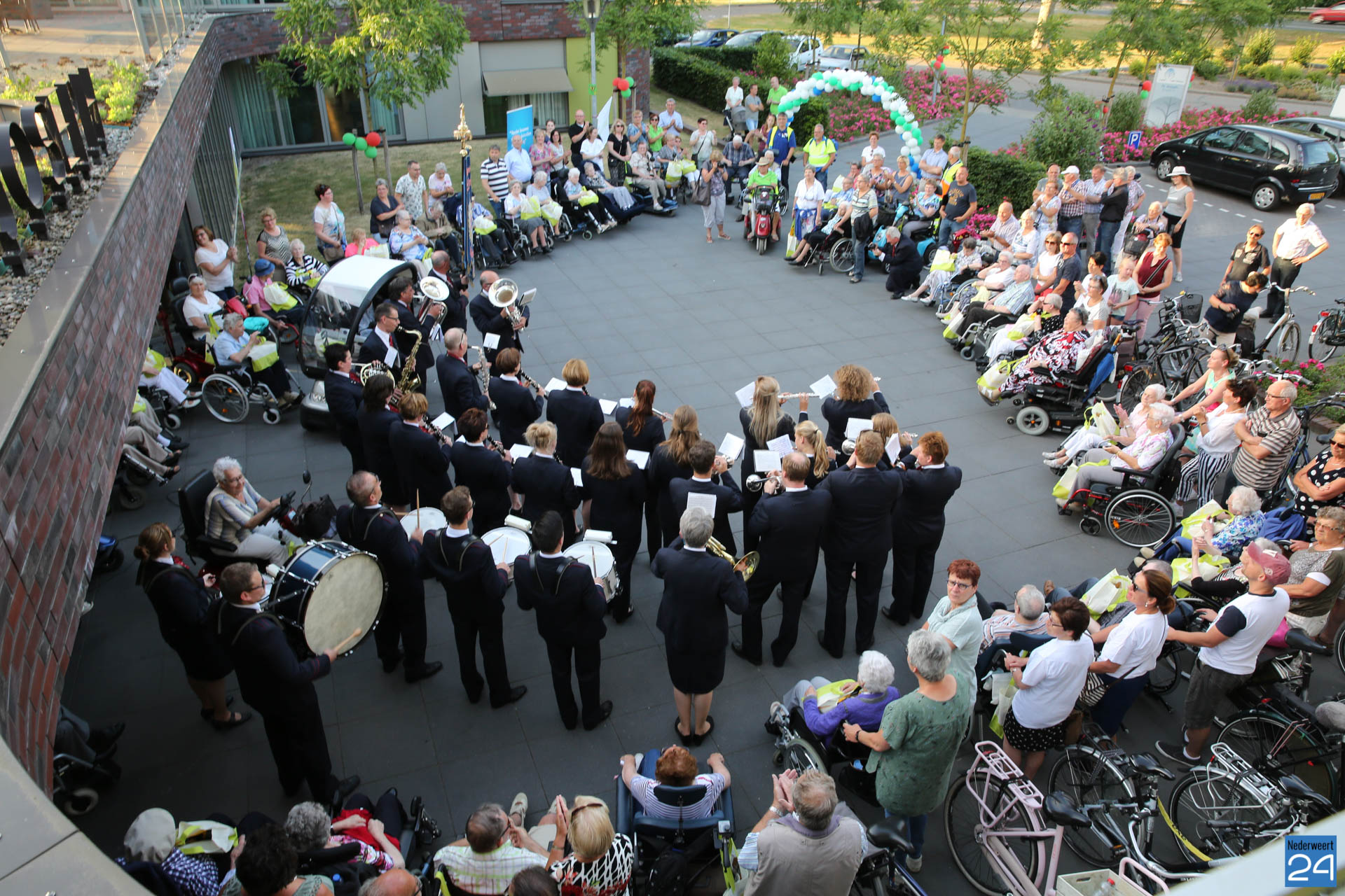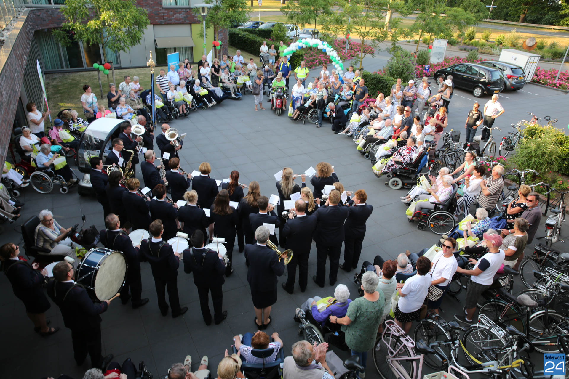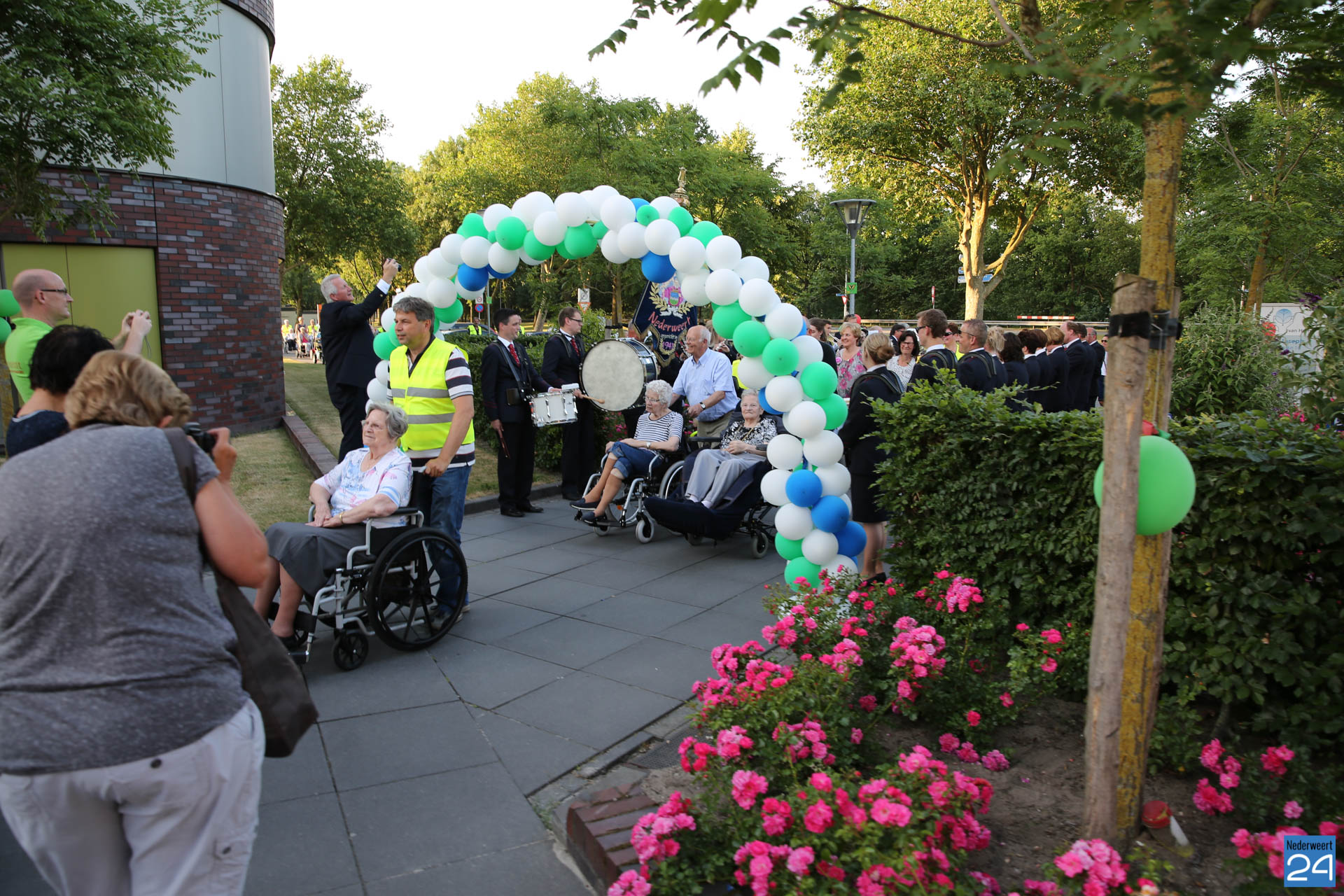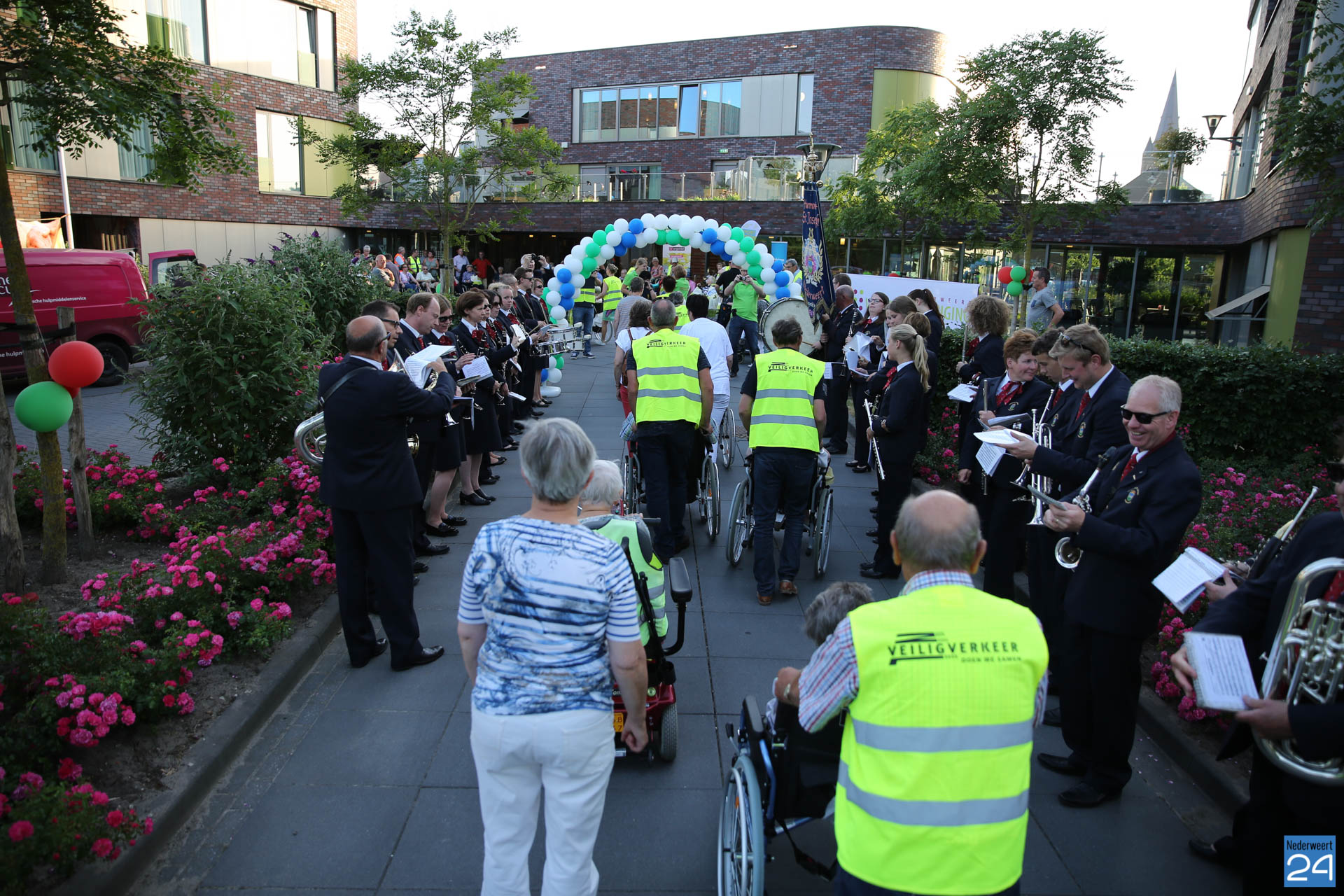 De stoet van 52 rollers en ongeveer 90 vrijwilligers werd op het einde opgewacht door harmonie Sint Joseph Nederweert. Onder muzikale begeleiding werden de laatste meters tot aan het zorgcentrum volbracht. Daar werd iedereen onthaalt door een muzikale haag.
