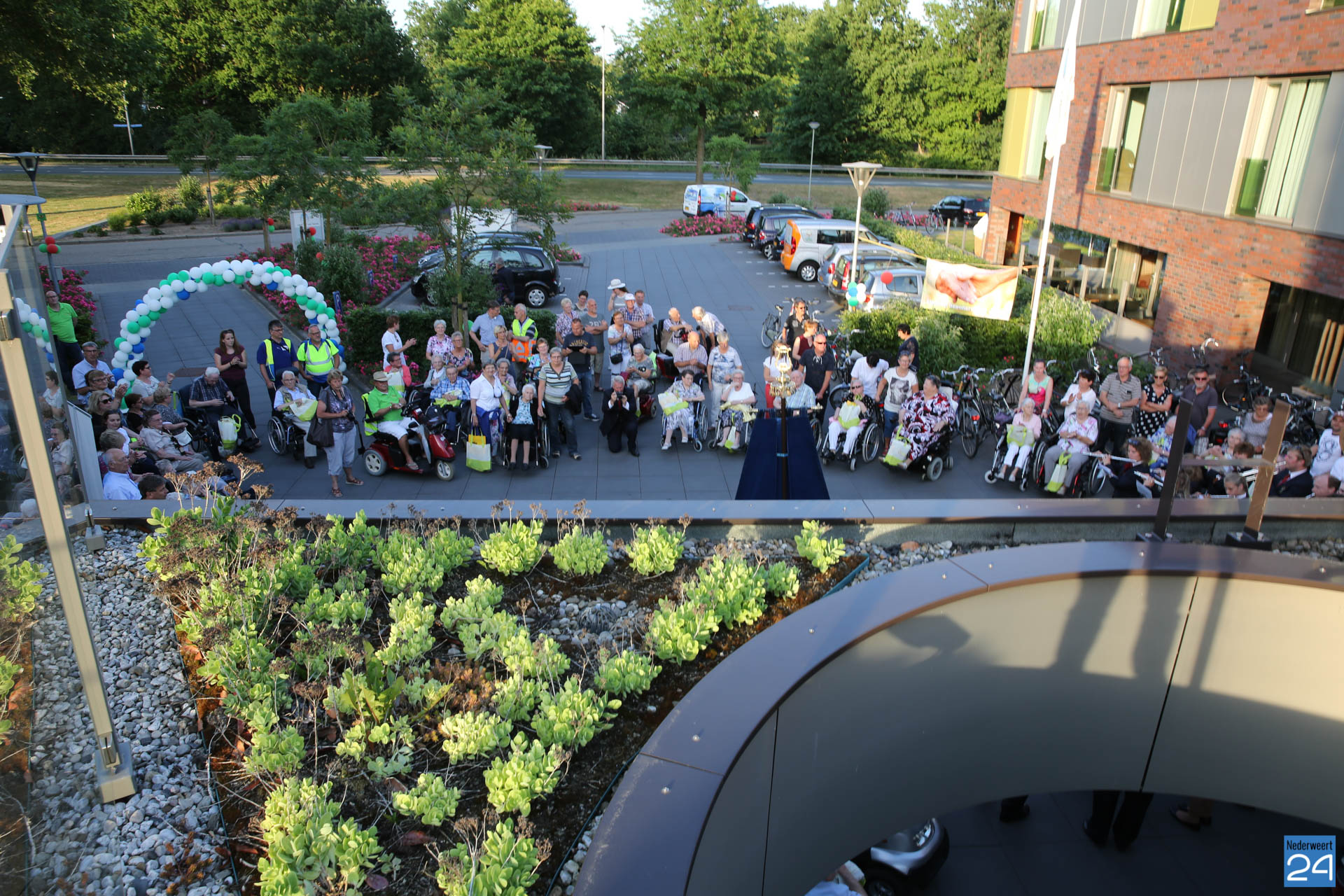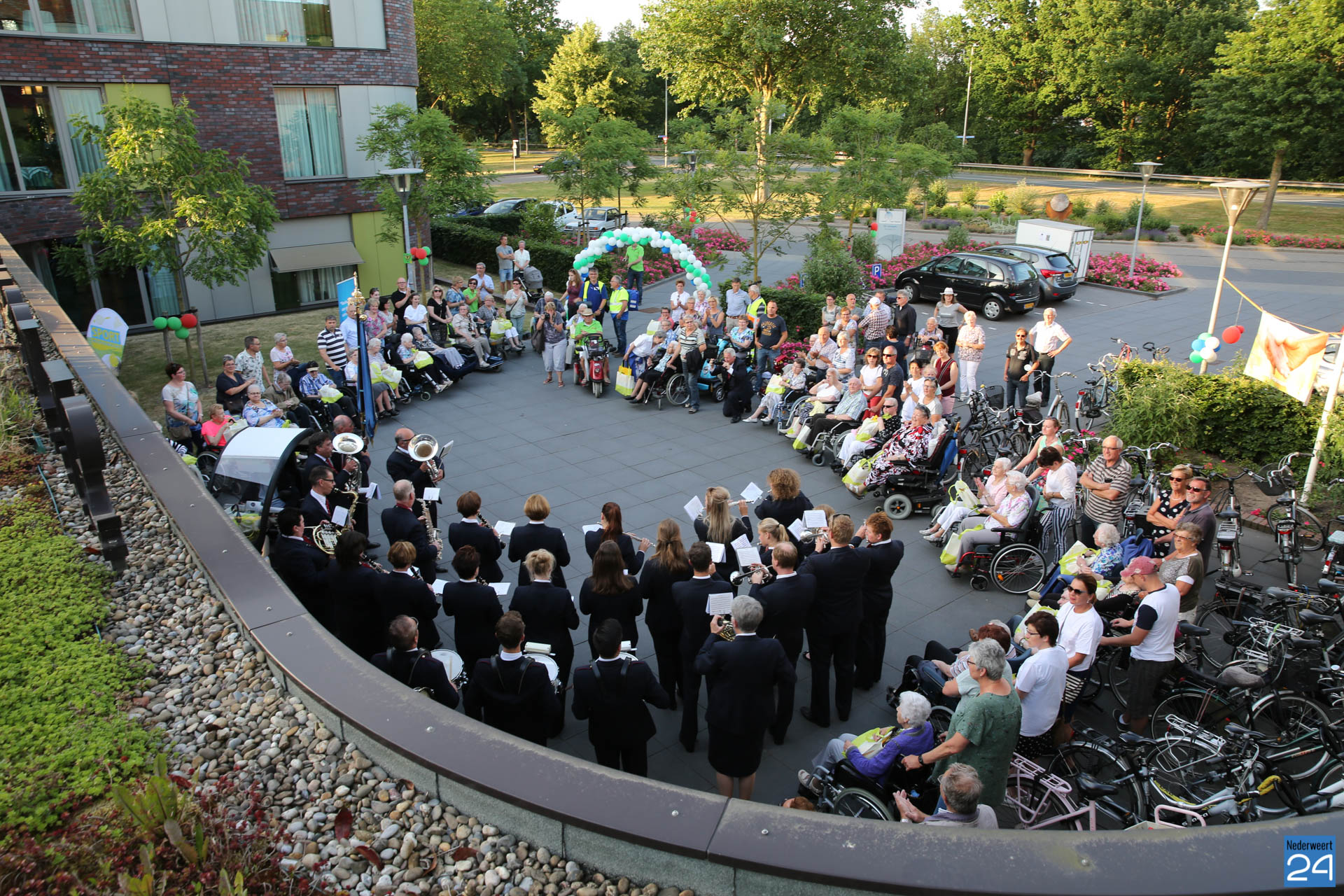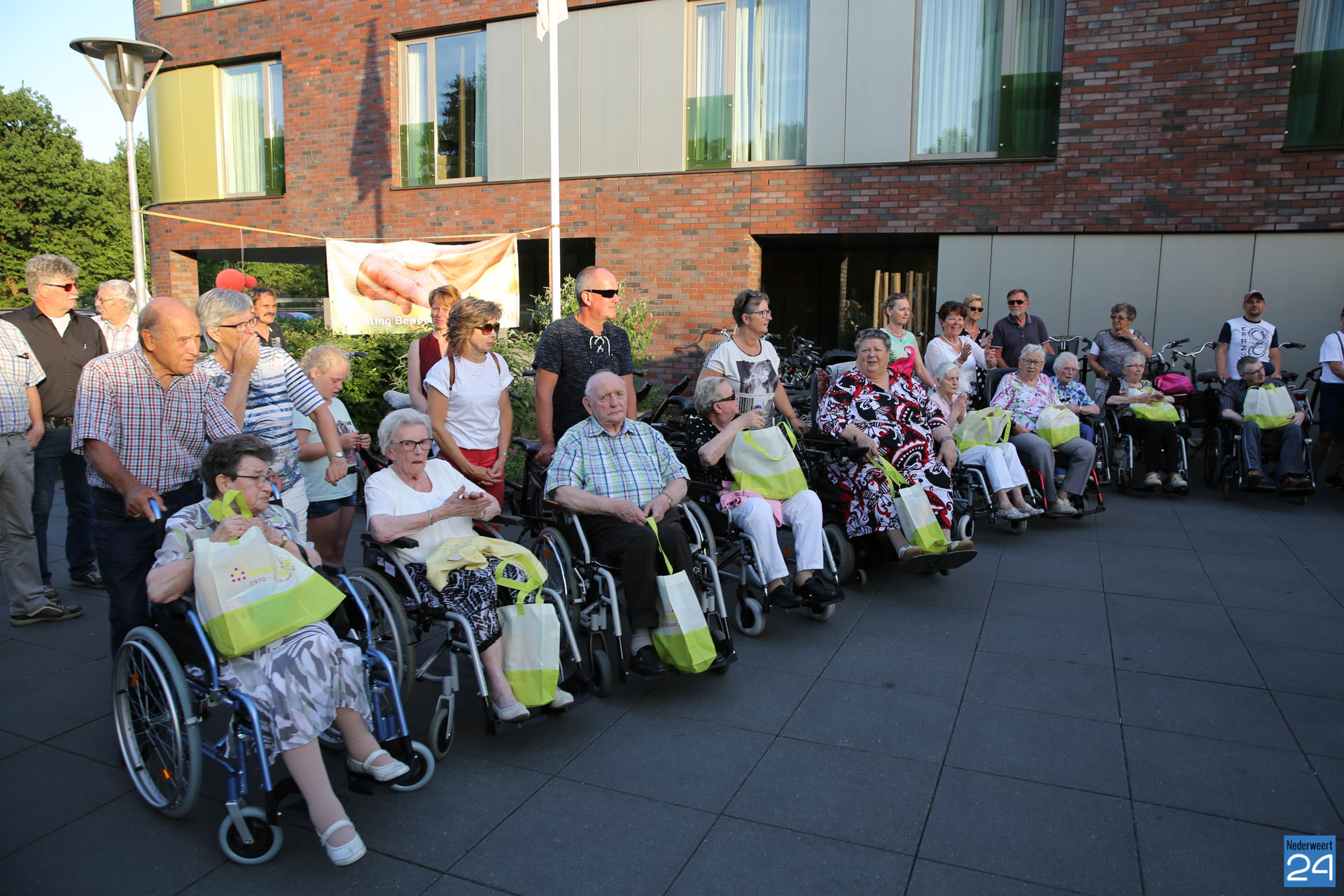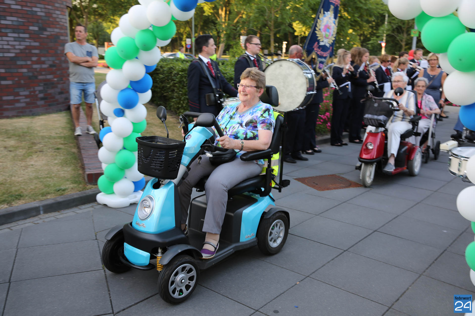 De stoet van 52 rollers en ongeveer 90 vrijwilligers werd op het einde opgewacht door harmonie Sint Joseph Nederweert. Onder muzikale begeleiding werden de laatste meters tot aan het zorgcentrum volbracht. Daar werd iedereen onthaalt door een muzikale haag.