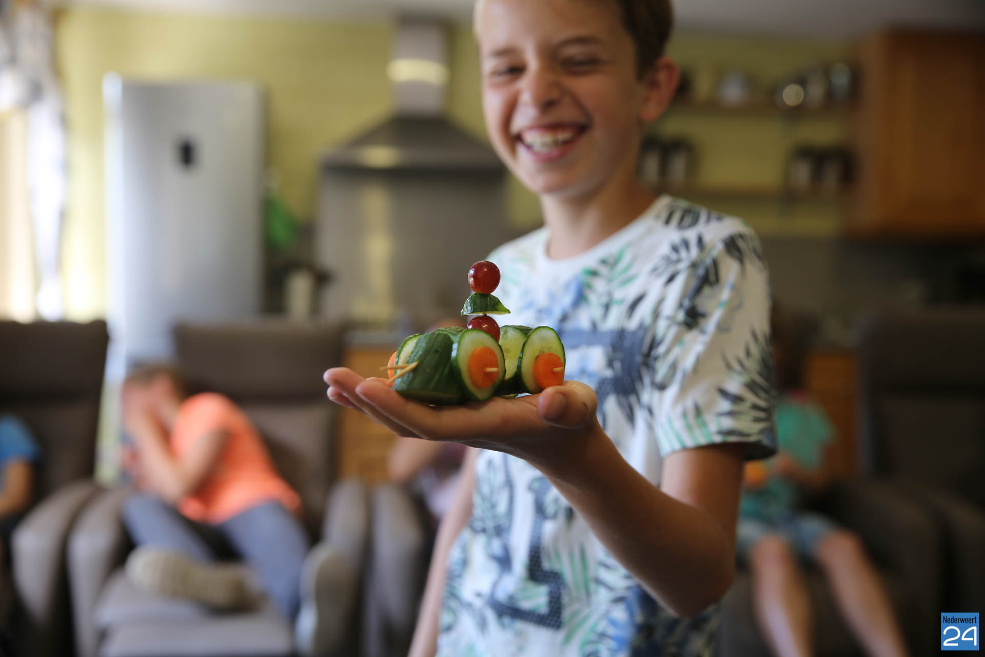 Op dinsdag waren de leerlingen van basisscholen De Klimop, De Zonnehof en De Bongerd te gast. Op woensdag was het de beurt aan de leerlingen van basisscholen De Kerneel, De Tweesprong en De Schrank. Op dinsdag mochten Wouter en Levi een mooie trofee in ontvangst nemen voor hun winnende foto van de maand. Ze beleefden de leerlingen, samen met de cliënten van de zorgboerderij, een KERNgezonde ochtend. De kinderen kregen een rondleiding door de vlindertuin, speelden een quiz in de moestuin, gingen een gezond hapje maken en een aantal spellen spelen.