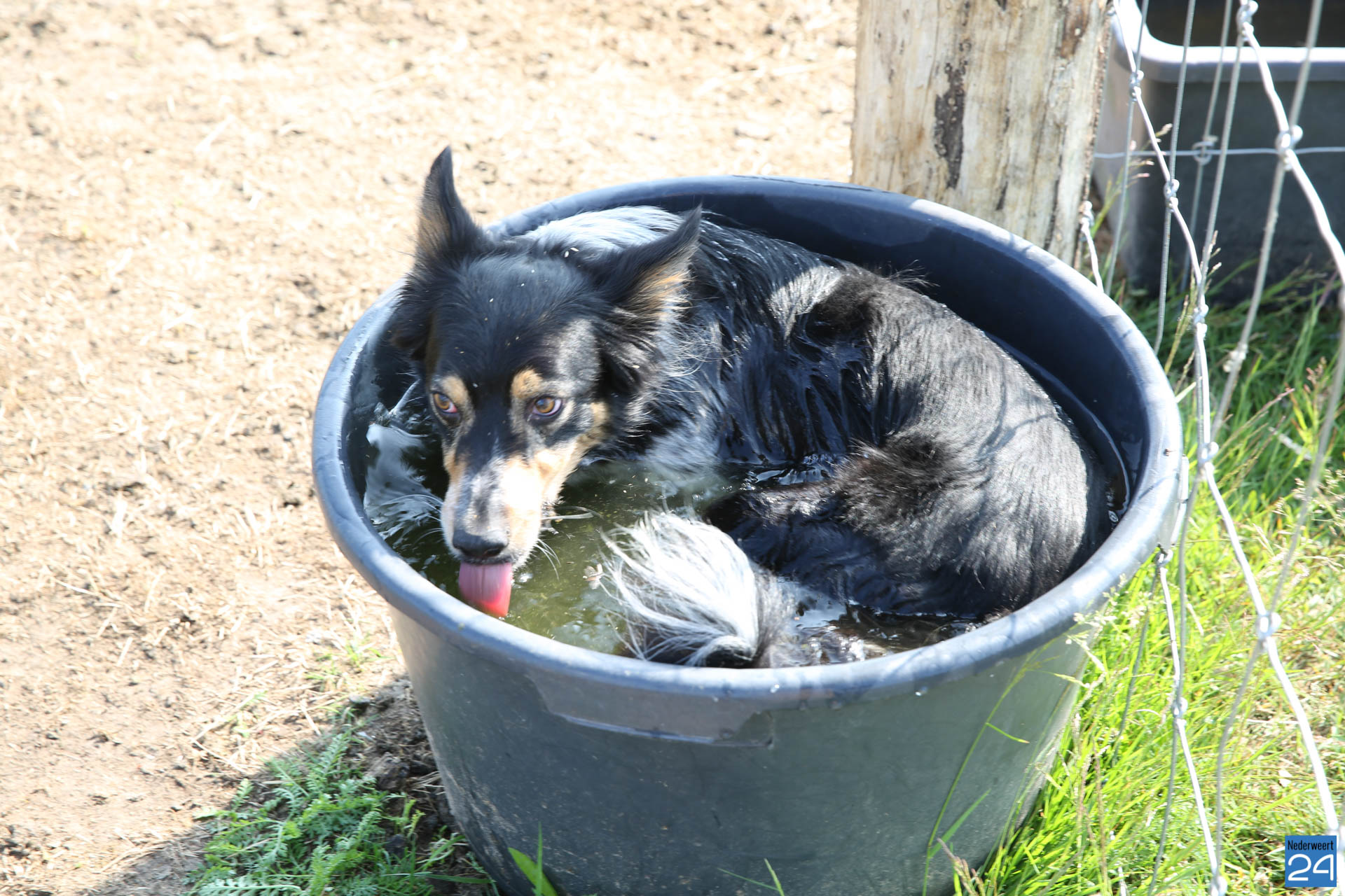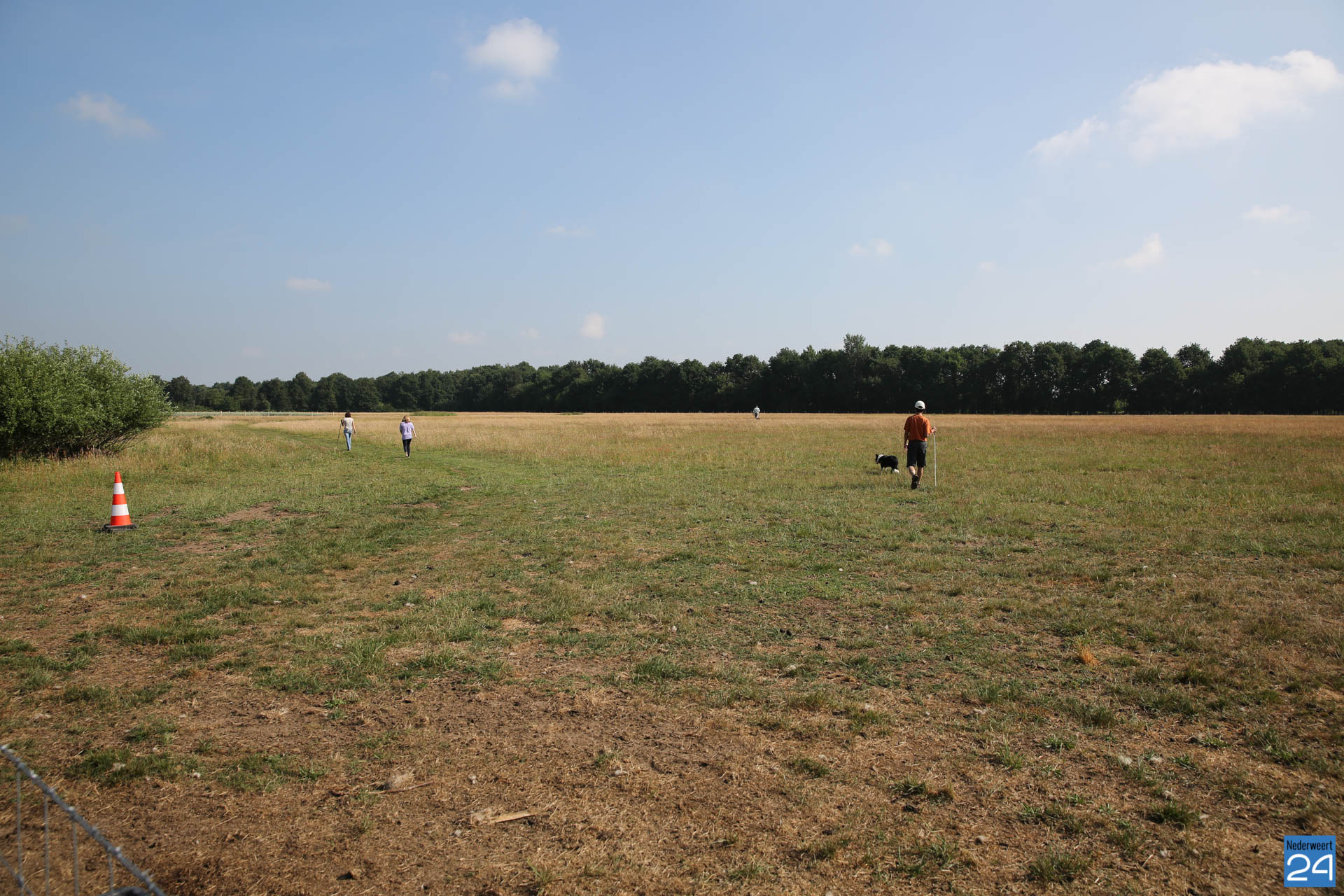 “Het is vanmorgen erg warm voor de honden en het gras was eigenlijk iets te lang waardoor het moeilijk was om het goed te doen, maar daar trainen we dus ook voor” aldus een van de deelnemers. “De honden zijn wel gewend aan de hitte en zoeken, op commando, verkoeling in de waterbakken”