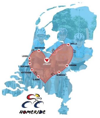 HomeRide 2017 gaat dwars door Nederland! We rijden van Utrecht naar Utrecht in de vorm van een hart. Daarbij komen we langs tien Ronald McDonald Huizen. We starten op het Domplein in Utrecht en we finishen ook weer in Utrecht, aan de voet van die beroemde Domtoren. Met meer dan 1000 fietsers gaan we HomeRide fietsen en we willen zo veel mogelijk geld binnenhalen.