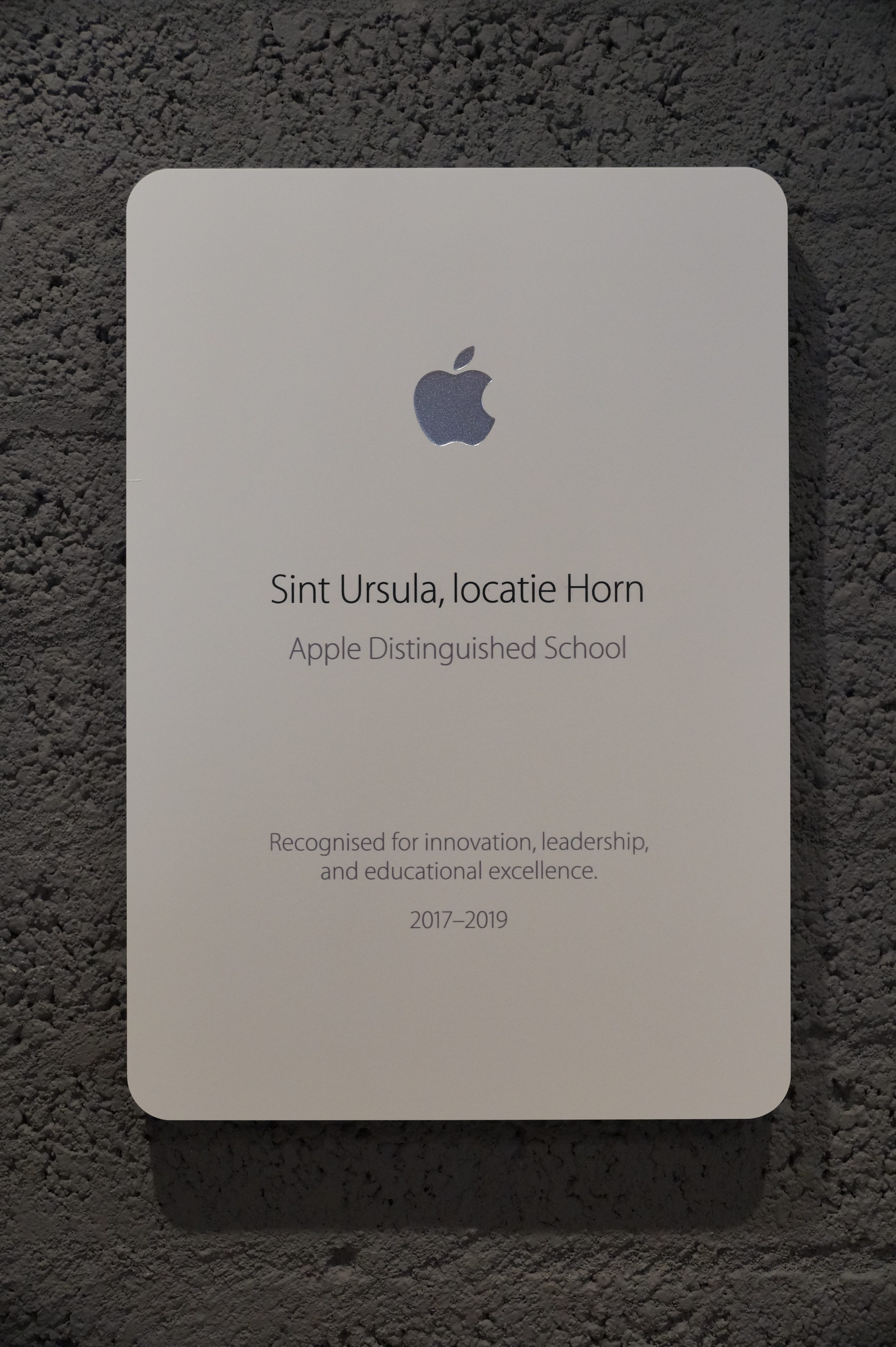 Scholengemeenschap Sint Ursula, locatie Horn, is enorm trots aan te mogen kondigen dat de school erkend is als een Apple Distinguished School voor de periode 2017-2019. SG Sint Ursula, locatie Horn, heeft dit te danken aan de klassen die werken met de iPad als didactisch hulpmiddel. SG Sint Ursula, locatie Horn, is de enige in Zuid-Nederland.
