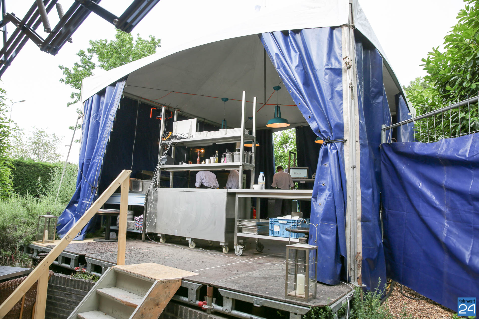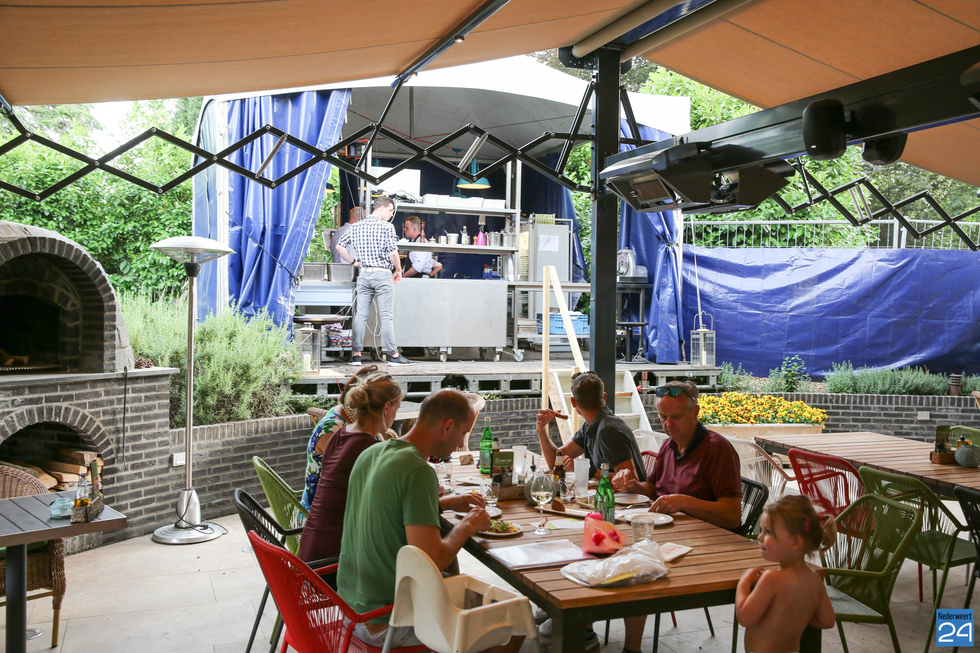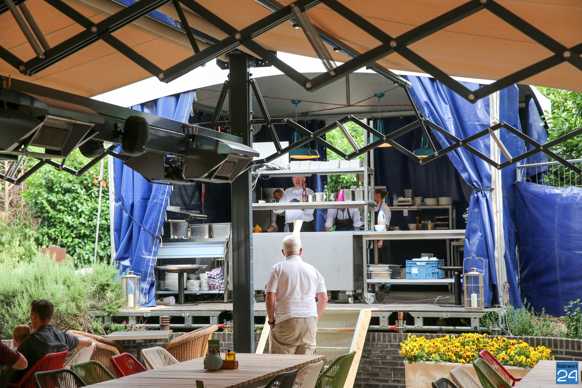 Van maandag 19 juni tot en met woensdag 21 juni is Restaurant Diverso gesloten. Vanaf donderdag 22 juni 17.00 uur gaan John en zijn keukenteam voor de gasten koken in een tijdelijke buitenkeuken: Diverso’s Kooktheater. Vanaf het terras kunnen gasten zien hoe hun gerechten worden bereid en klaargemaakt. In maart dit jaar werd een nieuwe terrasoverkapping geplaatst op het terras met daarin gasheaters, verlichting en geluid. Gasten zullen het keuken- en bedieningsteam in actie zien in alle transparantie.