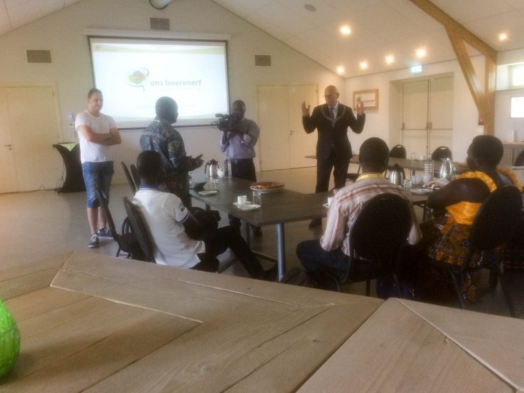 Op donderdag 22 juni is een groep van 8 Ugandezen op bezoek geweest bij Ons boerenerf in Nederweert-Eind. De groep bestond uit een journalist, een begeleider, de ambassadeur van de Nederlandse ambassade in Kampala en vijf boeren/ondernemers uit Uganda. De agrarische ondernemers hadden deze reis naar Nederland gewonnen omdat zij het afgelopen jaar als boer de beste resultaten hadden behaald.