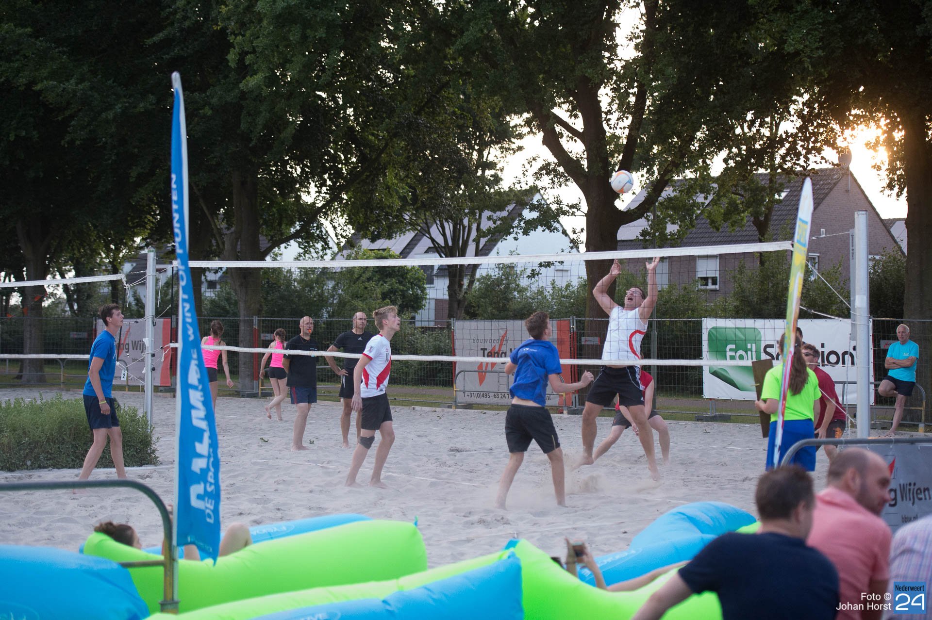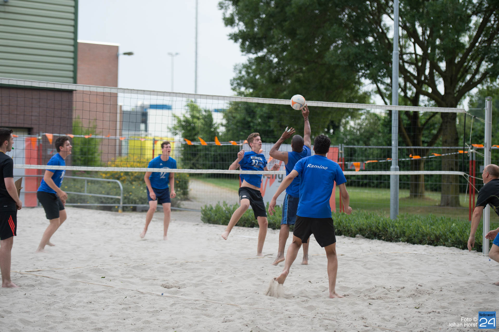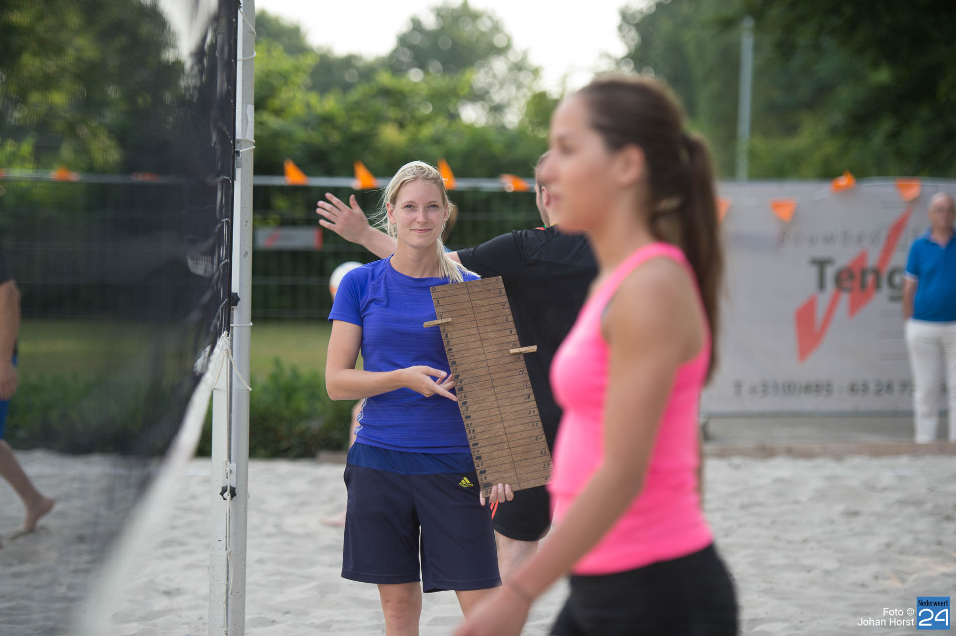 Het toernooi ging vervolgens weer verder met de wedstrijden en voor de aanwezigen was er een gezellige borrel bij de beachvelden naast sporthal de Bengele. In de herenpoule werd de finale gespeeld tussen” Tropicana” (winnaar van dag 1) en “Muchachos de la Playa“. Dit werd een spannende strijd die met 3-1 gewonnen werd door “Muchachos de la Play” en zij ontvingen uit handen van voorzitter Niek Creemers de inmiddels bekende JP Catering Bengele Snackschaal. Bij de dames waren het wederom de “Gekke Vrulliej” die het toernooi wonnen door het team “El Brigato Gialoblu” achter zich te houden. Ook de dames ontvingen de bekende snackschaal.