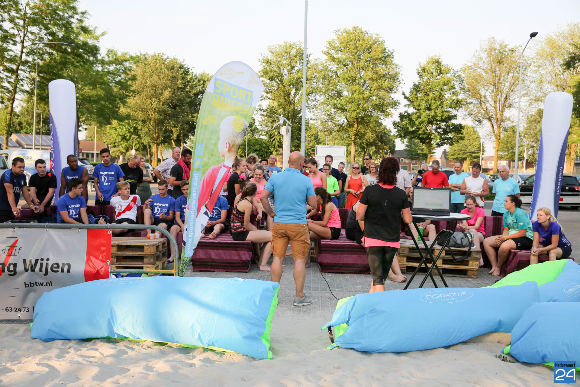 Donderdagavond was de 2e dag van het Open Beach Volleybal Toernooi van het Bengele Beweegt Beach Event in Nederweert. Totaal 9 teams deden mee en de avond met een speciale thema: Sport en voeding. Daarvoor was Fysioactive aanwezig op uitnodiging van het CDA Nederweert. De avond begon met een klein regenbuitje en het bleef de hele avond flink waaien. Toch kunnen we terugkijken op een heel geslaagde avond.