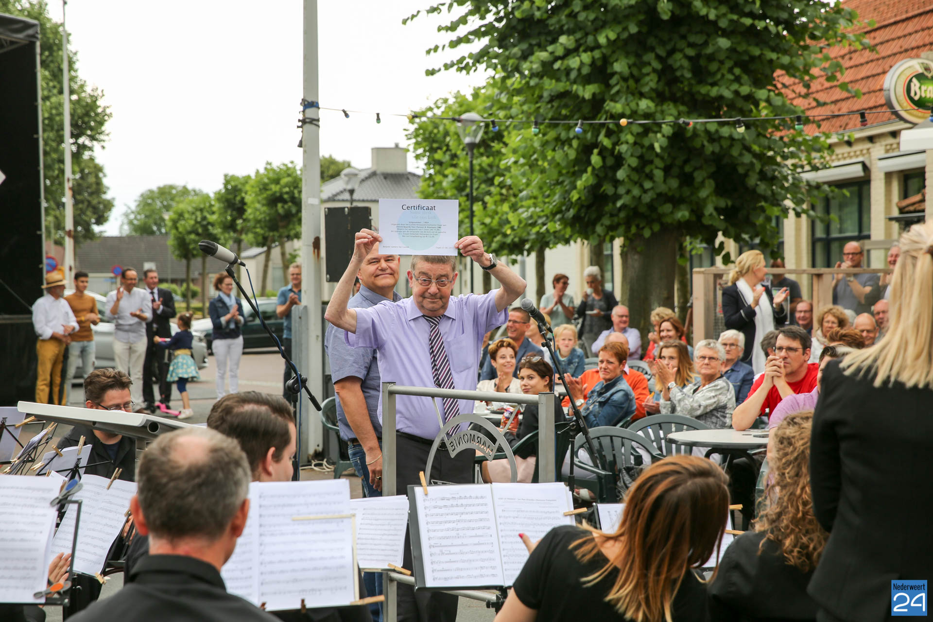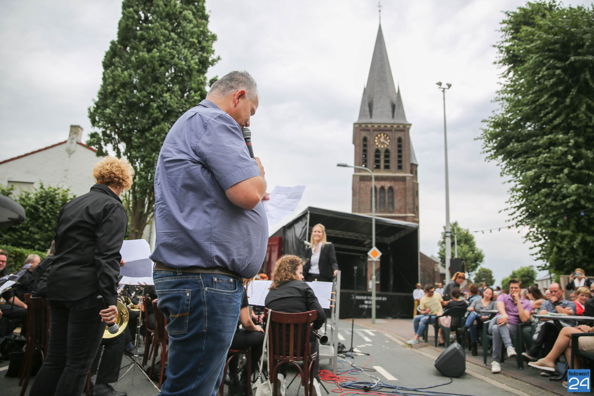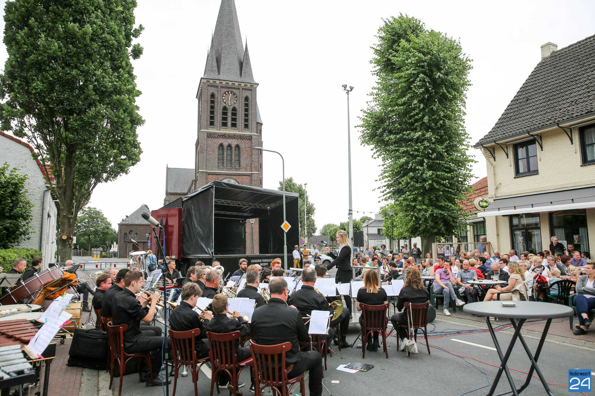 Een traditie die niet meer gemist kan worden in Ospel. Het jaarlijkse zondagochtend kermisconcert van harmonie Melodie der Peel. Het was lekker weer dus voor de kerk met zicht op de kermis, mooier kan bijna niet.