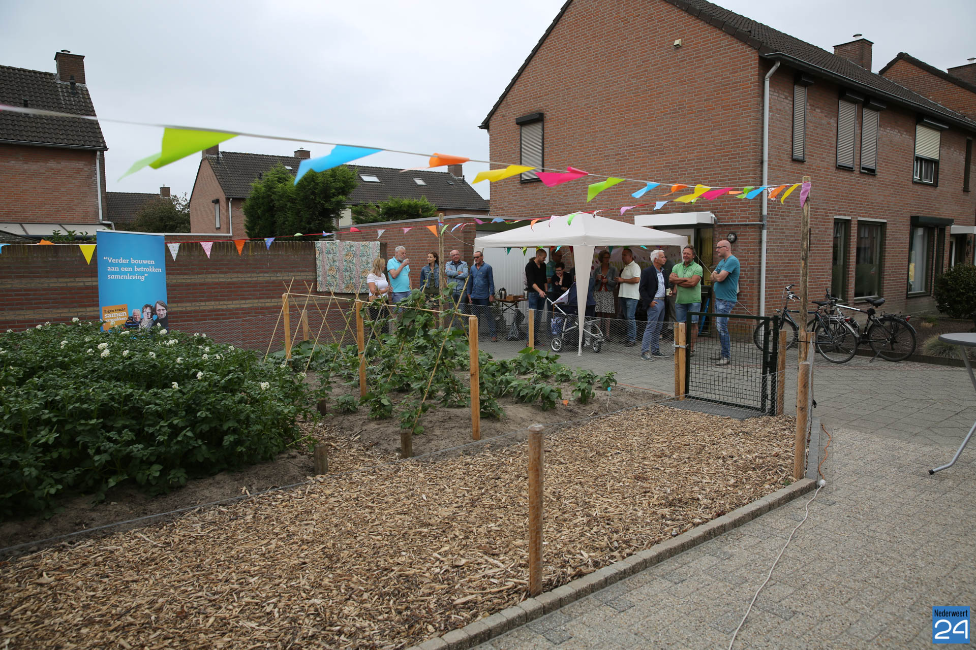 Het hekwerk staat, de picknickset is geplaatst en de grond zit vol met planten. De derde Samentuin in Nederweert is een feit en is zaterdagmorgen officieel geopend door wethouder Geraats van de gemeente Nederweert. De wethouder bedankte de buurtbewoners, vrijwilligers en Woningvereniging Nederweert die deze samentuin mogelijk gemaakt hebben. Na het onthullen van het bord met de spelregels, mocht Henk de allereerste “courgette” oogsten.
