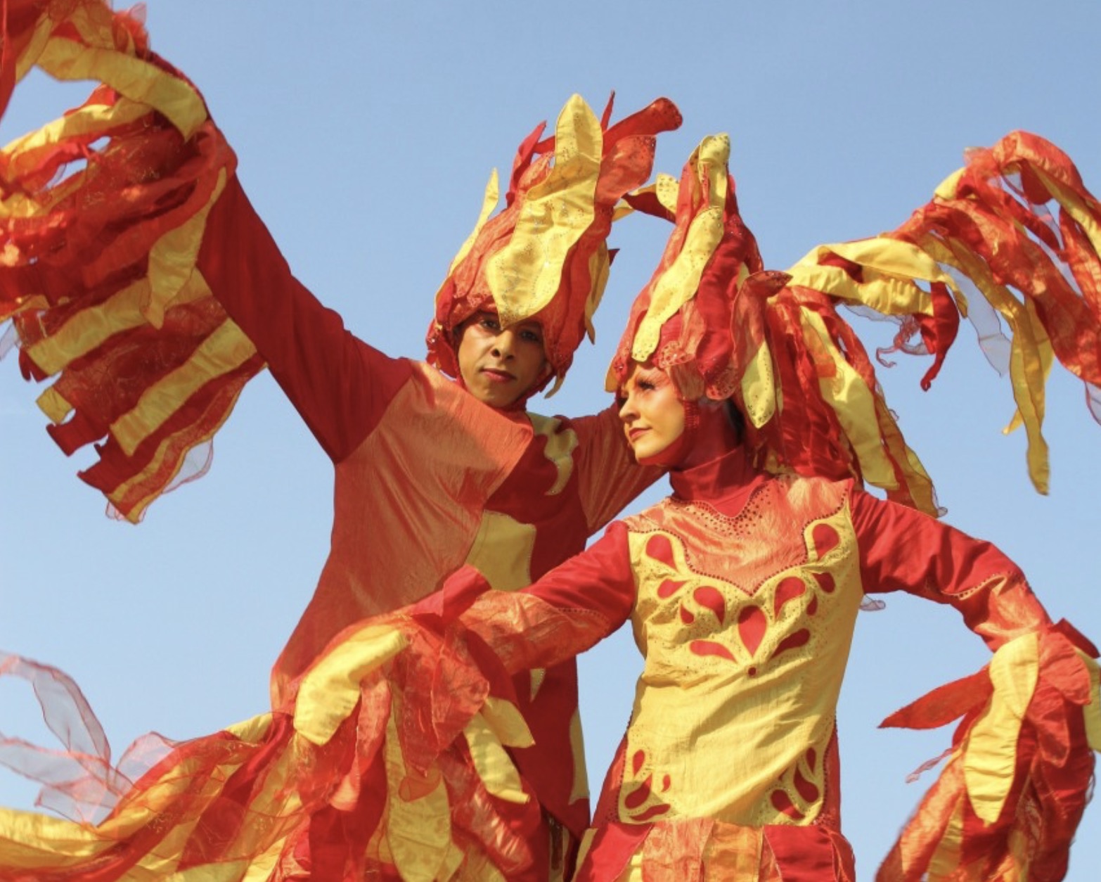 De Vurige Steltenlopers symboliseren de levenskracht van de Brugstraat. Vuur staat symbool voor geestdrift en hartstocht (het vuur van de Liefde) en tevens voor zuiverheid. Kom kijken hoe deze steltlopers onder begeleiding van spannende muziek spetteren en branden vanaf hun meterhoge stelten.