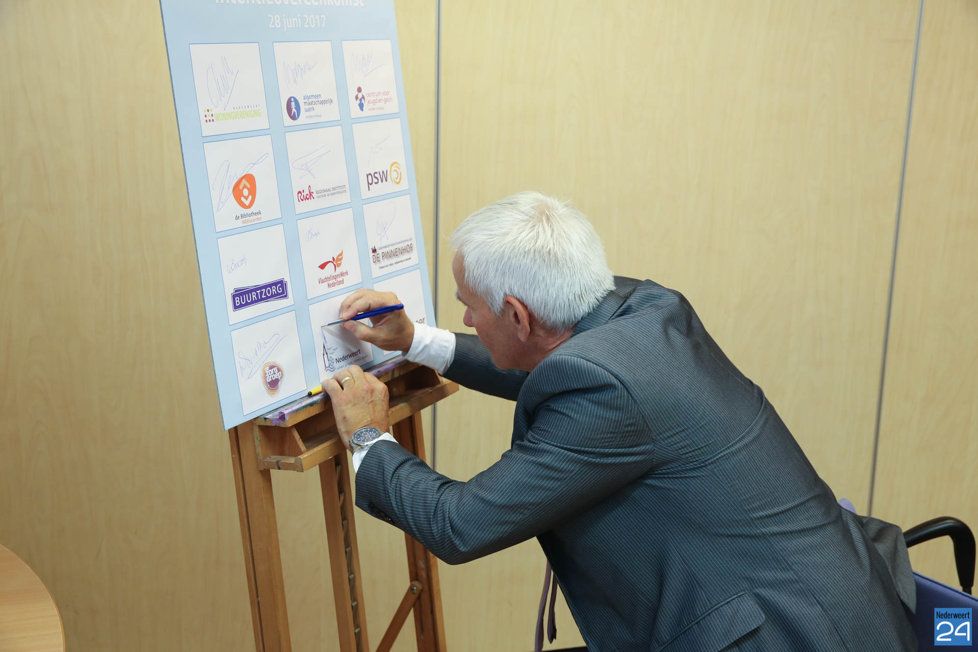 Twaalf instellingen in Nederweert willen samen één ontmoetings- en ondersteuningspunt voor alle inwoners in Nederweert realiseren. Daarvoor hebben ze woensdagmorgen 28 juni een intentieovereenkomst getekend in het bijzijn van wethouder Geraats. Een stap op weg naar één loket voor wonen, welzijn en zorg in de gemeente.