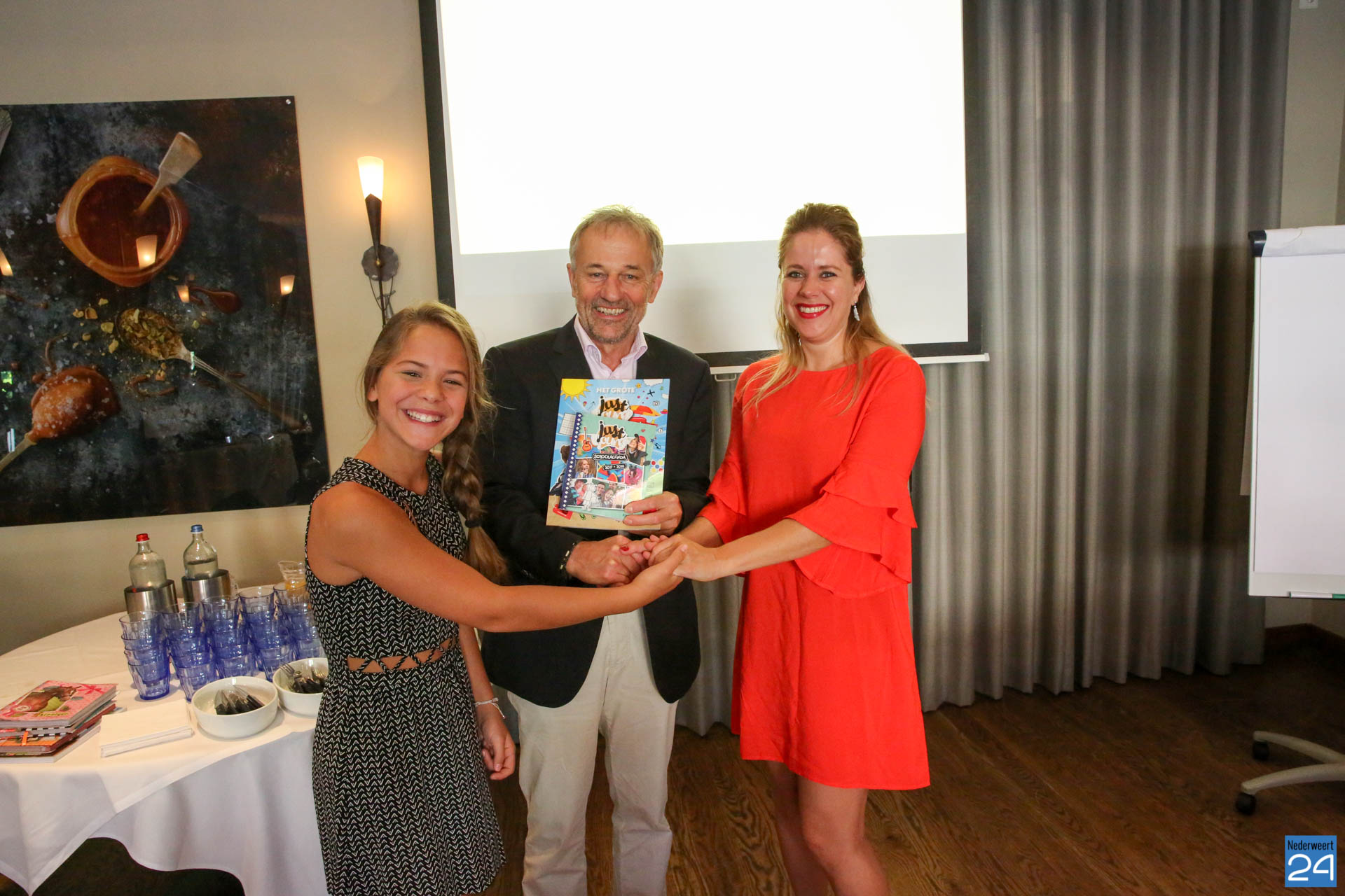 Beide uitingen zijn afgelopen week rondgebracht naar de scholen. Donderochtend 6 juli werd er in een ontbijtsessie een presentatie gehouden over Just Young en kregen alle aanwezigen een tasje mee met het boek en de agenda. Burgemeester Jos Heijmans kreeg symbolisch het eerste exemplaar overhandigd. Ook wethouder Henk Geraats van Nederweert was aanwezig om de agenda in ontvangst te nemen.