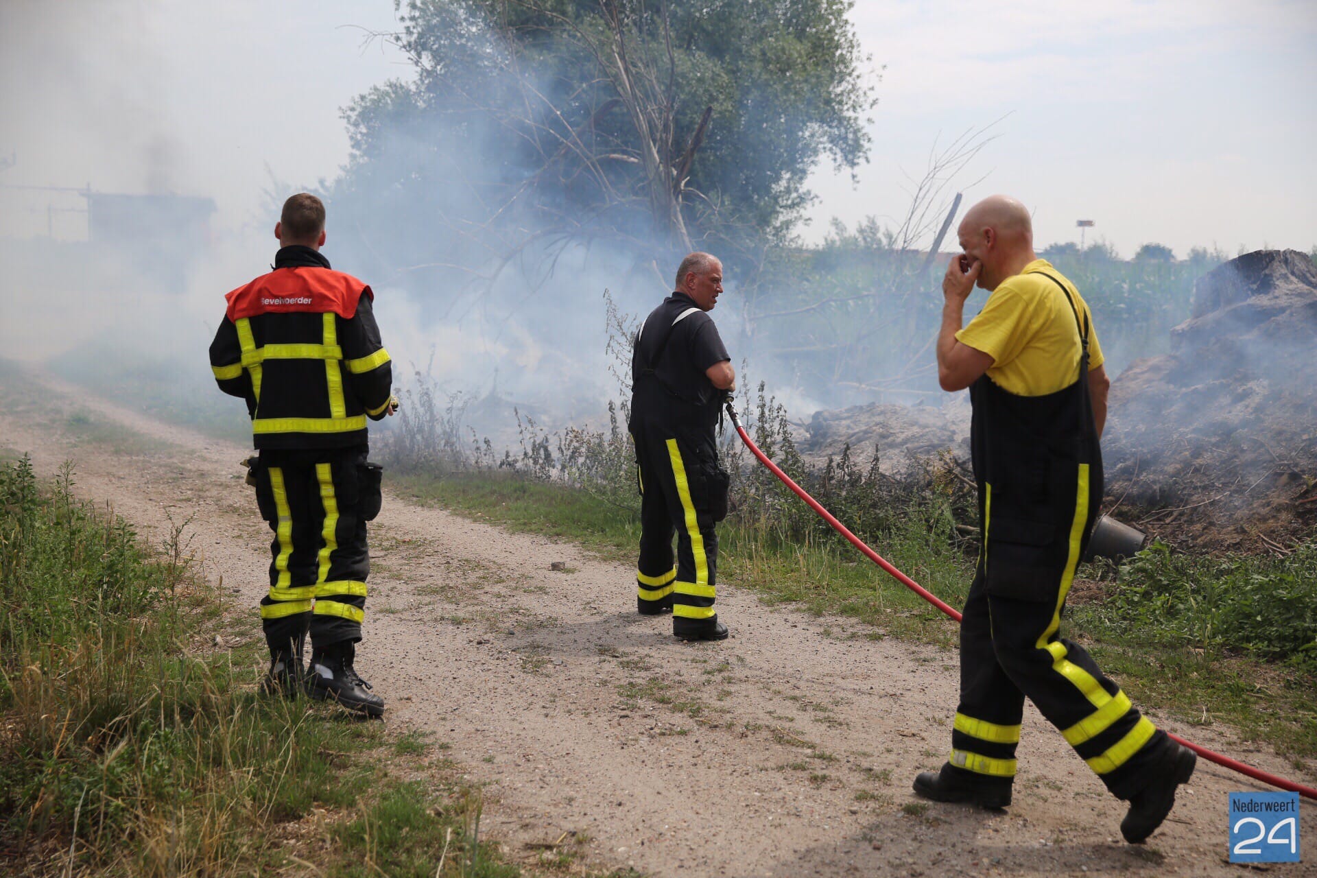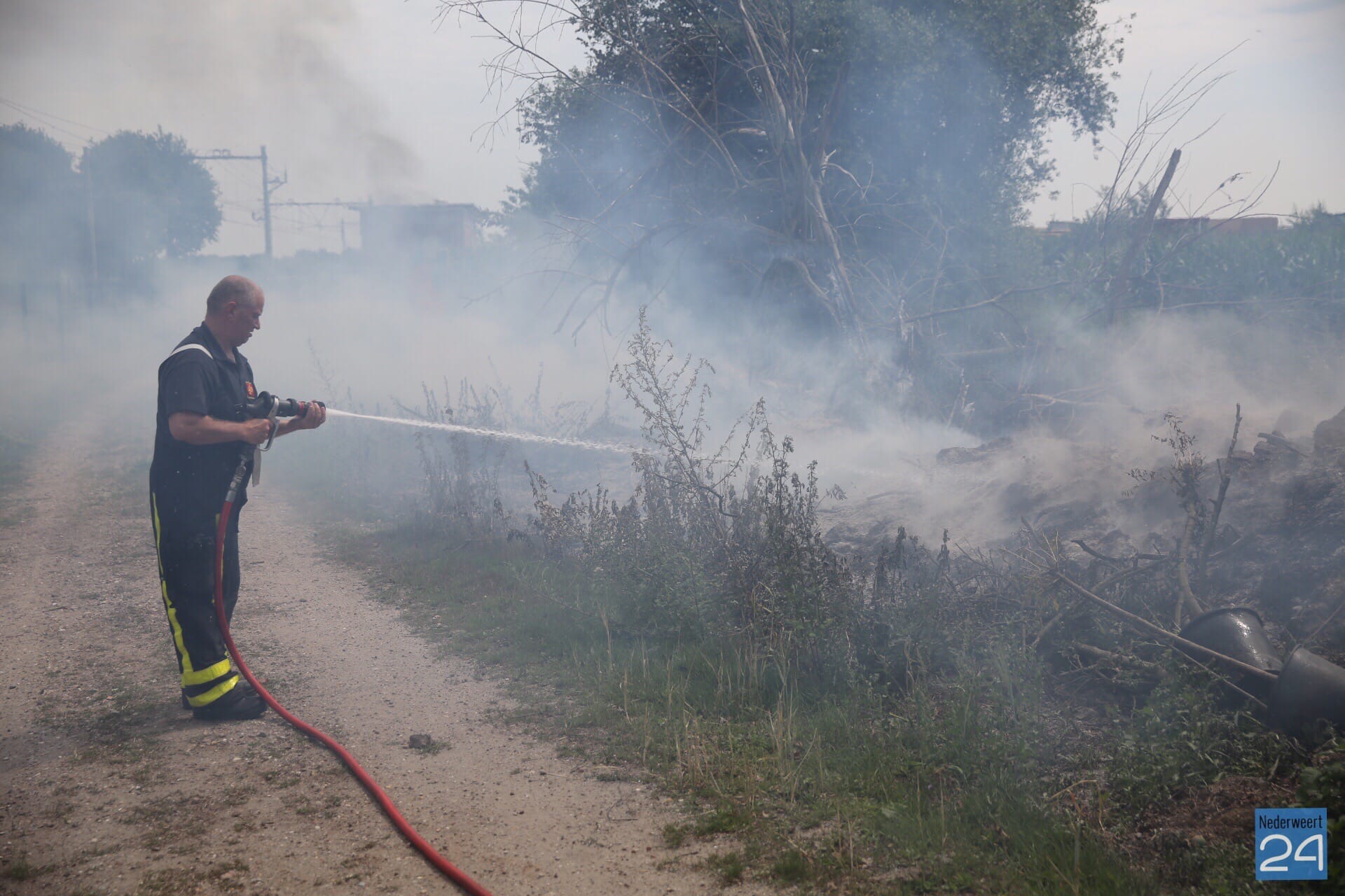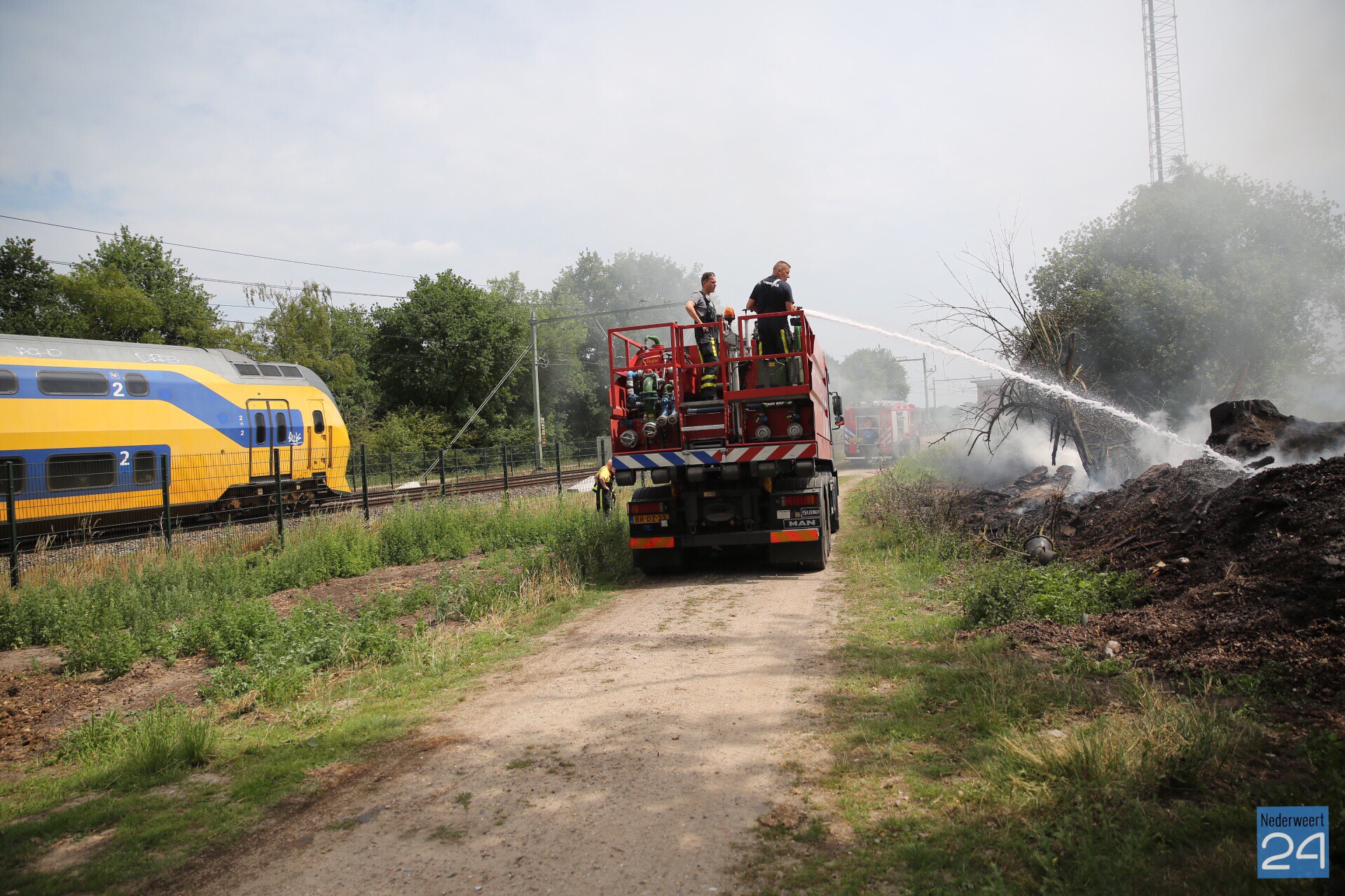 Langs het spoor tussen Weert en Roermond heeft een ‘composthoop’ vlam gevat. Op de plek ligt groenafval hoog opgeslagen en dit is door de droogte in brand gevlogen. De brandweer is met een blusvoertuig en de waterwagen met waterkanon uitgerukt om de brand te blussen. Een loader wordt ingezet om de composthoop uit elkaar te trekken om alles goed te kunnen blussen.