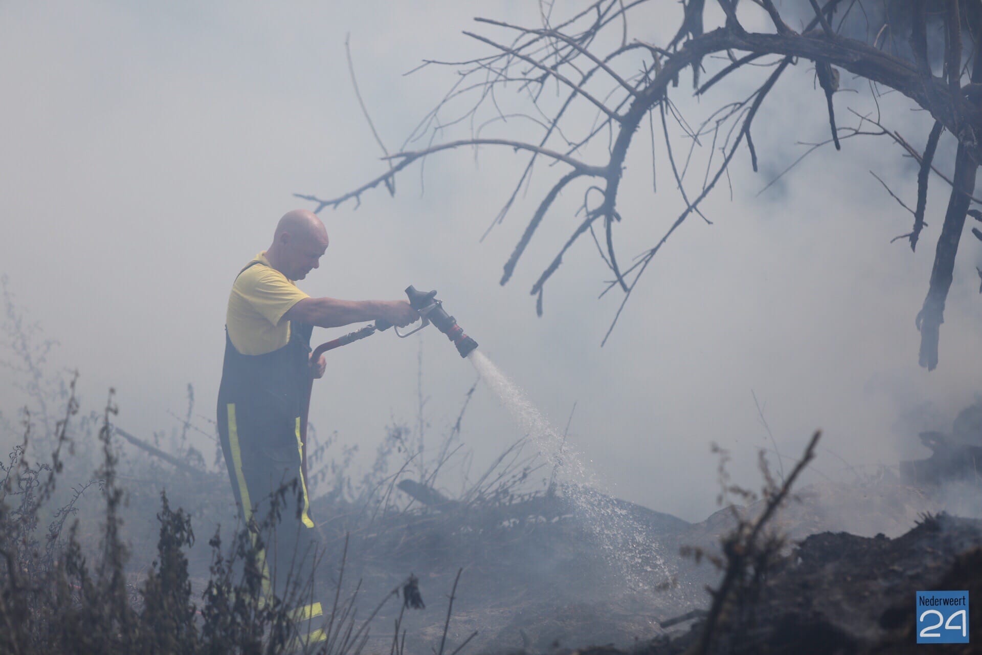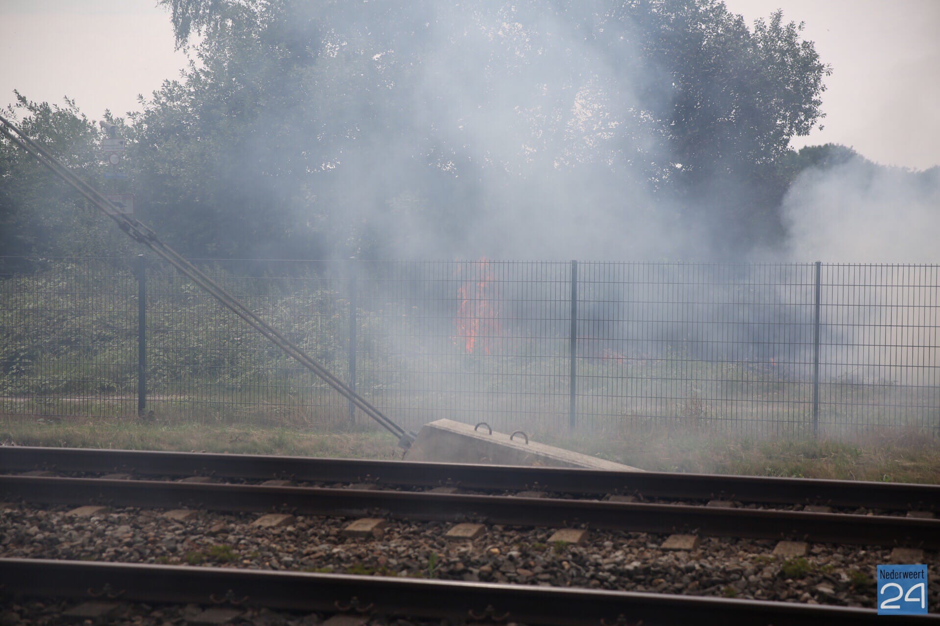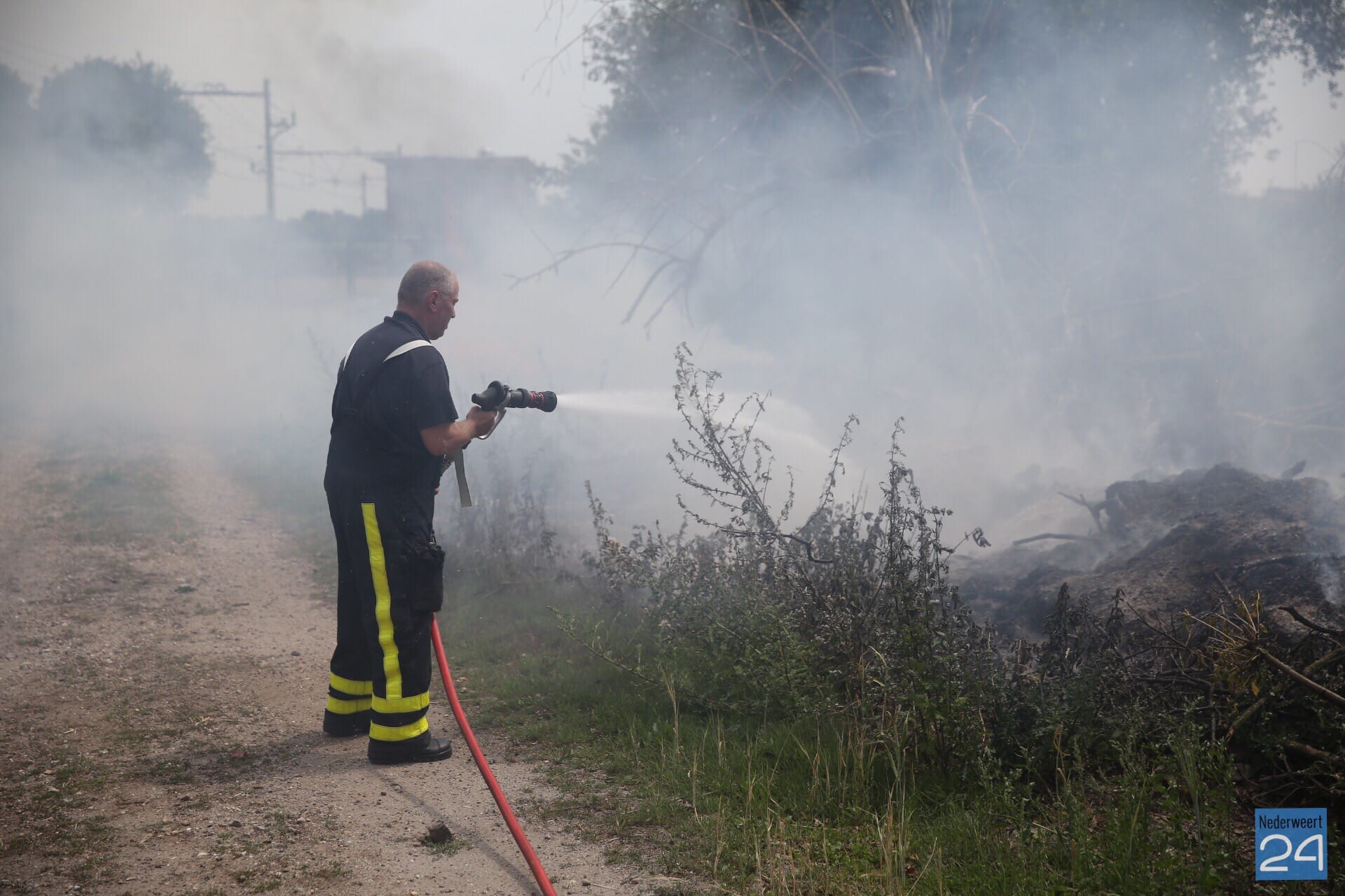 Langs het spoor tussen Weert en Roermond heeft een ‘composthoop’ vlam gevat. Op de plek ligt groenafval hoog opgeslagen en dit is door de droogte in brand gevlogen. De brandweer is met een blusvoertuig en de waterwagen met waterkanon uitgerukt om de brand te blussen. Een loader wordt ingezet om de composthoop uit elkaar te trekken om alles goed te kunnen blussen.