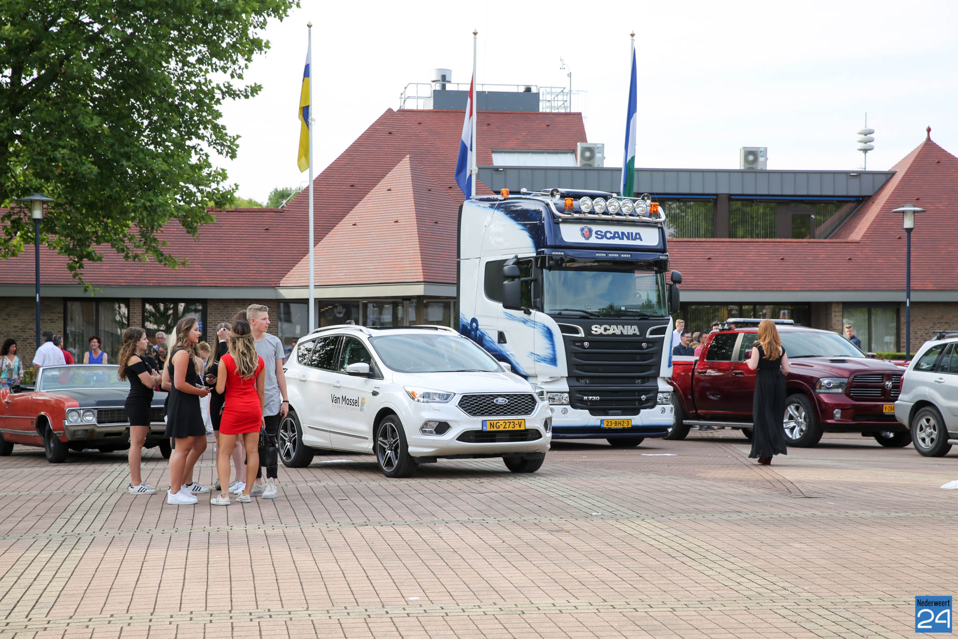 Donderdagavond hebben alle geslaagde eindexamenkandidaten van het Citaverde in Nederweert hun diploma in ontvangst mogen nemen. Om 18:30 uur verzamelden de leerlingen zich bij het gemeentehuis van Nederweert om van daaruit met bijzondere voertuigen naar school te rijden. Unieke, oude, vette auto’s of motoren en zelfs een SRV-bus stonden op het Raadhuisplein klaar. Na de groep foto’s reden ze in groepen naar school. Daar werden ze door ouders, familie en vrienden en bekenden opgewacht.
