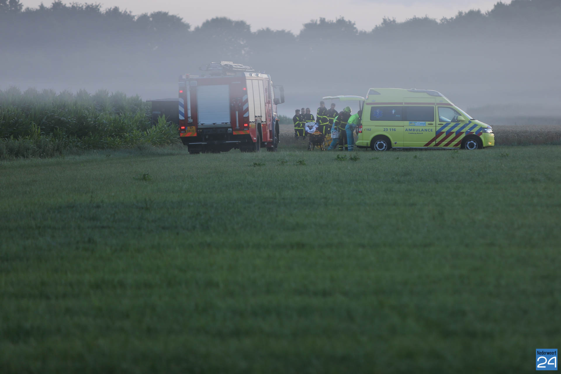Het ambulancepersoneel heeft de persoon gestabiliseerd en met behulp van de brandweer is hij vanuit de akker naar de ambulance gedragen. Hij is met onbekende verwondingen naar het ziekenhuis is vervoerd.
