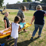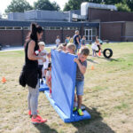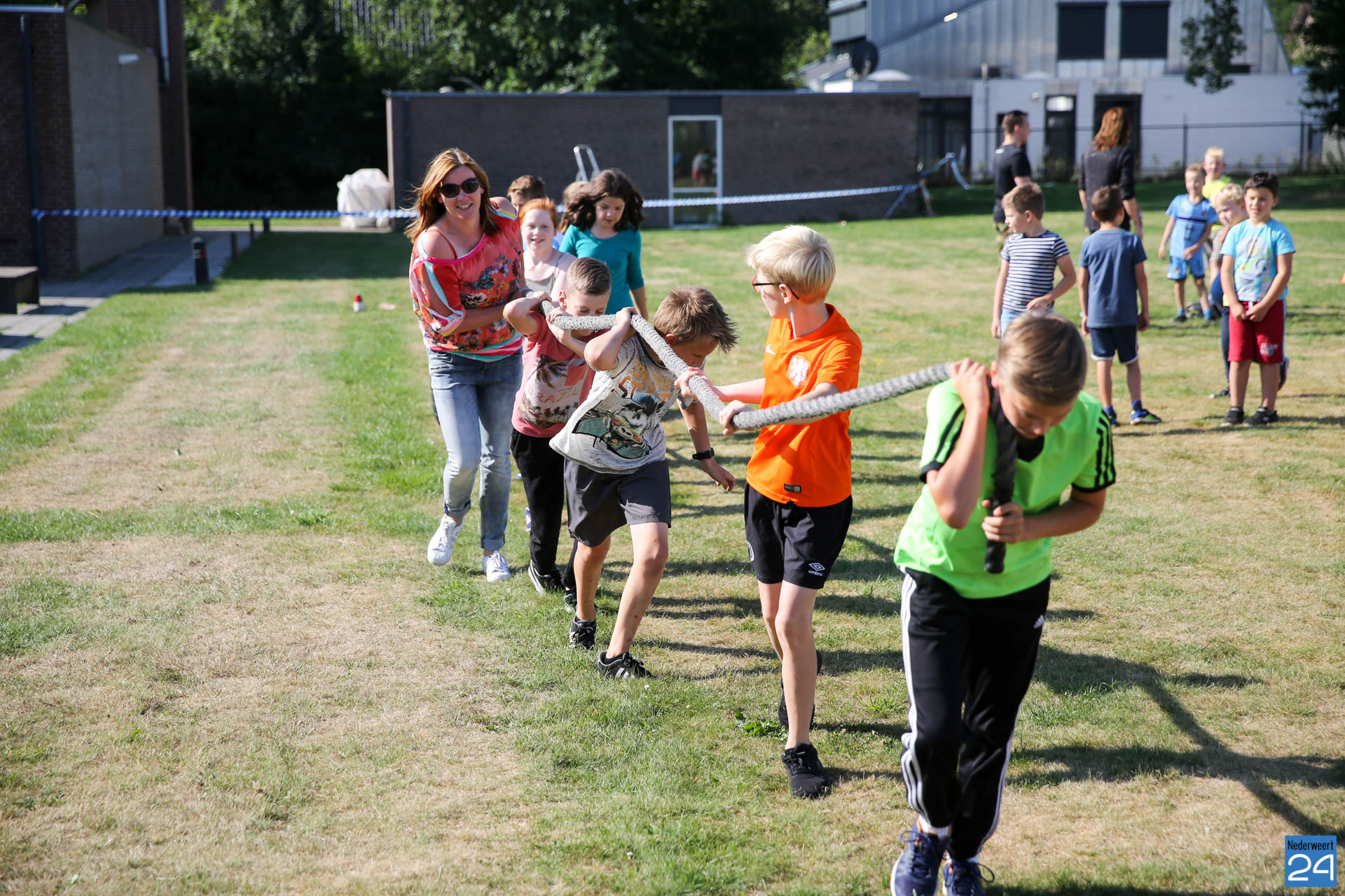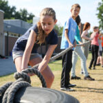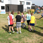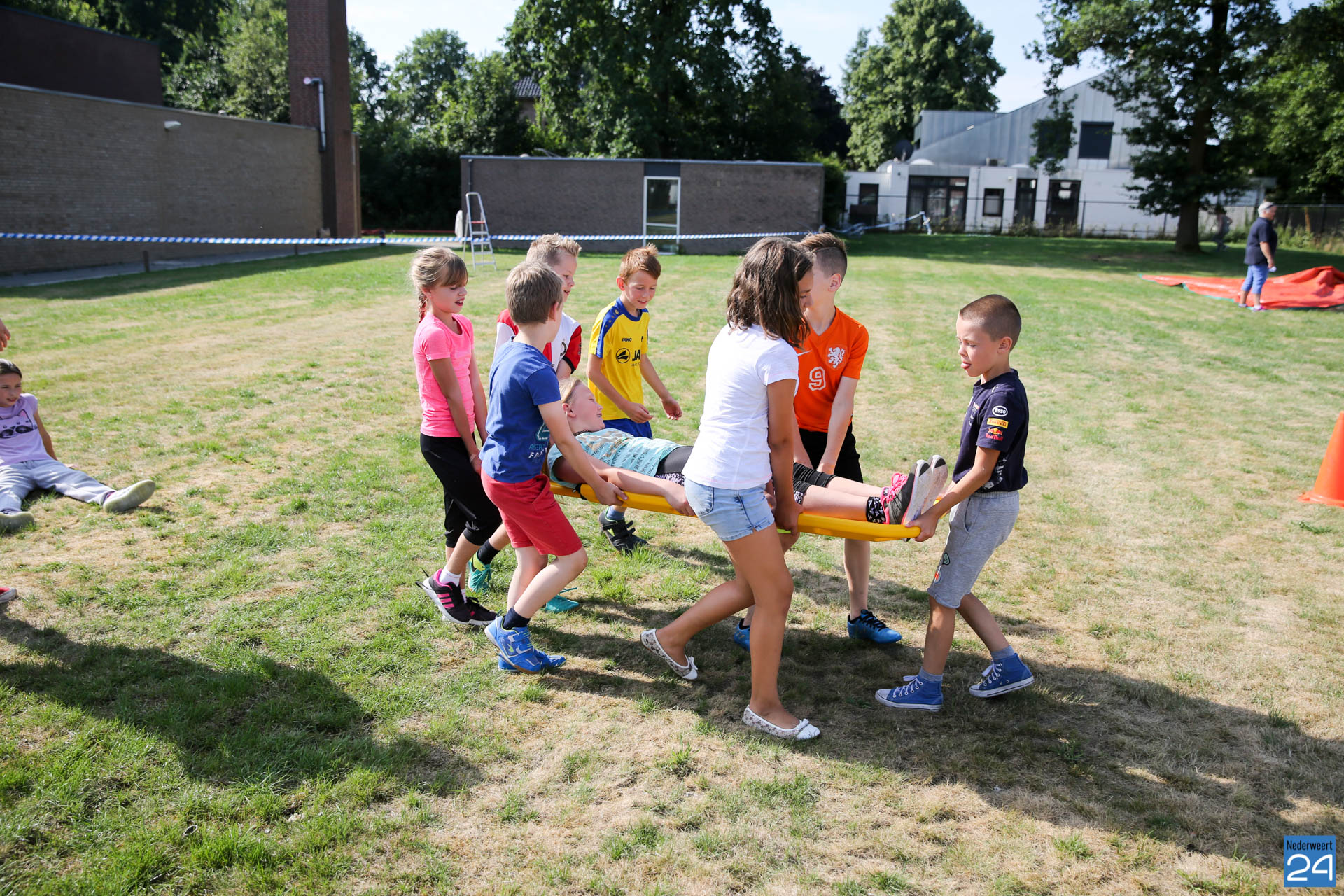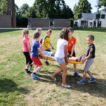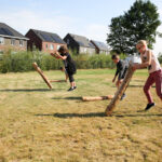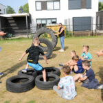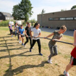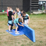 Onder begeleiding van instructeur Alwin Bultman, ouders en leraren gingen de kids van de groepen 3 – 8 actief aan de slag met banden, boomstammen, zeilen, brancards en nog veel meer. Met een stralend zonnetje en voldoende drinken was het een mooie morgen voor de leerlingen. De kids van de groepen 1 en 2 hadden een spelletjesmorgen op school.