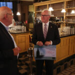 Na het diner werd de een cheque overhandigd.”Een mooie bedrag voor onze Stichting Vrienden van de Lambertustoren en een mooie gebaar van alle betrokkenen,” aldus Fons Jacobs, oud burgemeester van Nederweert. “We zullen samen de schouders er onder moeten zetten met vooral activiteiten voor het volk. Misschien moeten we volgend jaar 551 jaar vieren en het jaar erop 552 jaar zodat het een jaarlijks terugkerend evenement kan worden voor alle inwoners van Nederweert”. Het allereerste bedrag voor de stichting werd opgehaald tijdens de uitvaartdienst van Lies Evers-van Dijk.