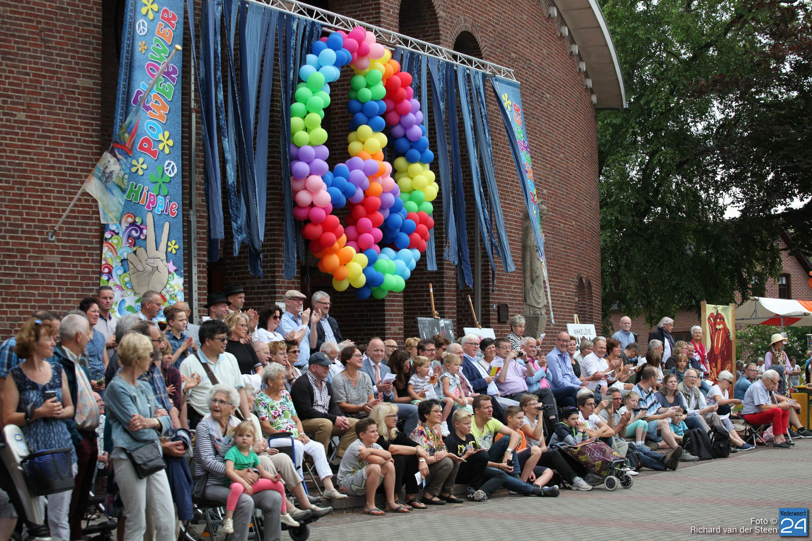 Centraal in het dorp lag het Hippieplein. Vanuit alle invalswegen werden de bezoeker uitgenodigd via een kleurige ‘poort’ het hippieterrein te betreden. Hier heerst een Woodstock-sfeer met live muziek, nozems die een waterpijp roken en natuurlijk de vervoermiddelen uit die tijd Minicoopers, Puchs, Zundapps, Volkswagen kevers en een echte hippiebus. Spiritualiteit en vrijheid stonden centraal en er was van alles te koop op de Ibiza-markt. Het leven was vooral ‘easygoing’.