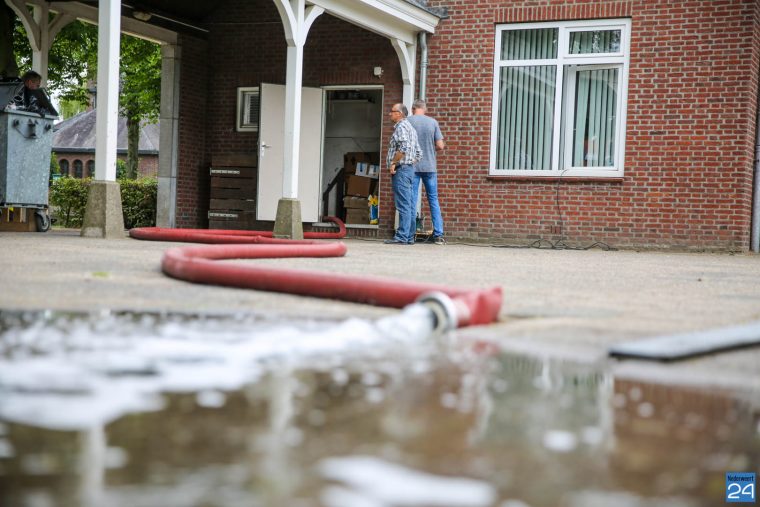 De brandweer zit om de hoek en dus was deze snel ter plaatse. Met een flinke pomp was de kelder zo leeg. De kelder word met vereende krachten verder droog gemaakt. Gelukkig werd het nu ontdekt en niet pas na de vakantie. Dan was de schade niet te overzien geweest.
