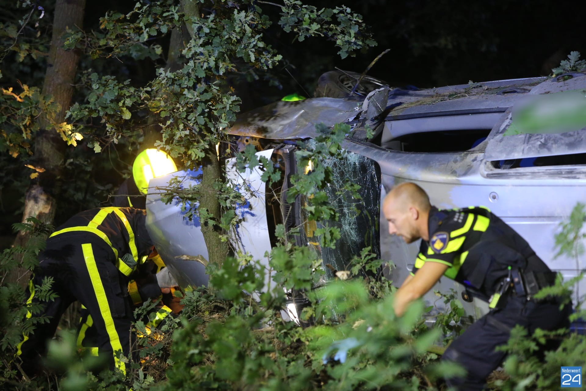 De automobilist is rechts naast de weg geraakt en waarschijnlijk door een stuurcorrectie de macht over het stuur verloren. De auto is links tegen een boom gereden en over de kop geslagen.