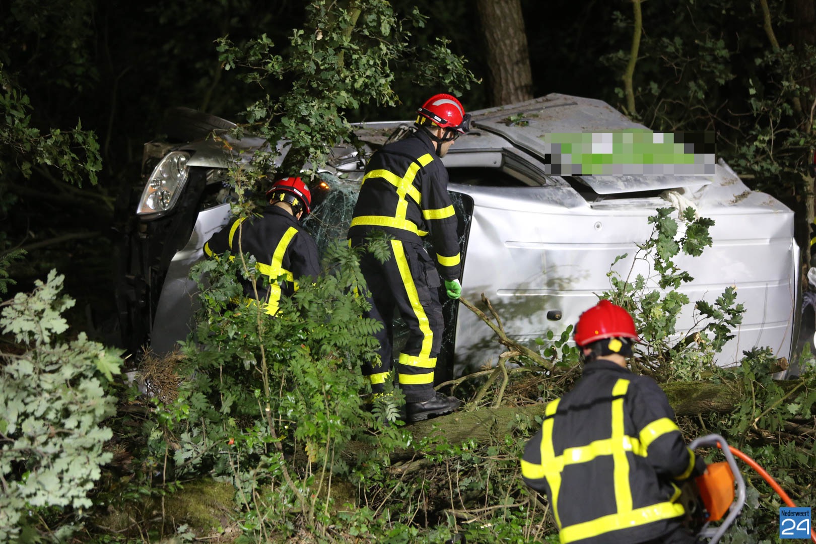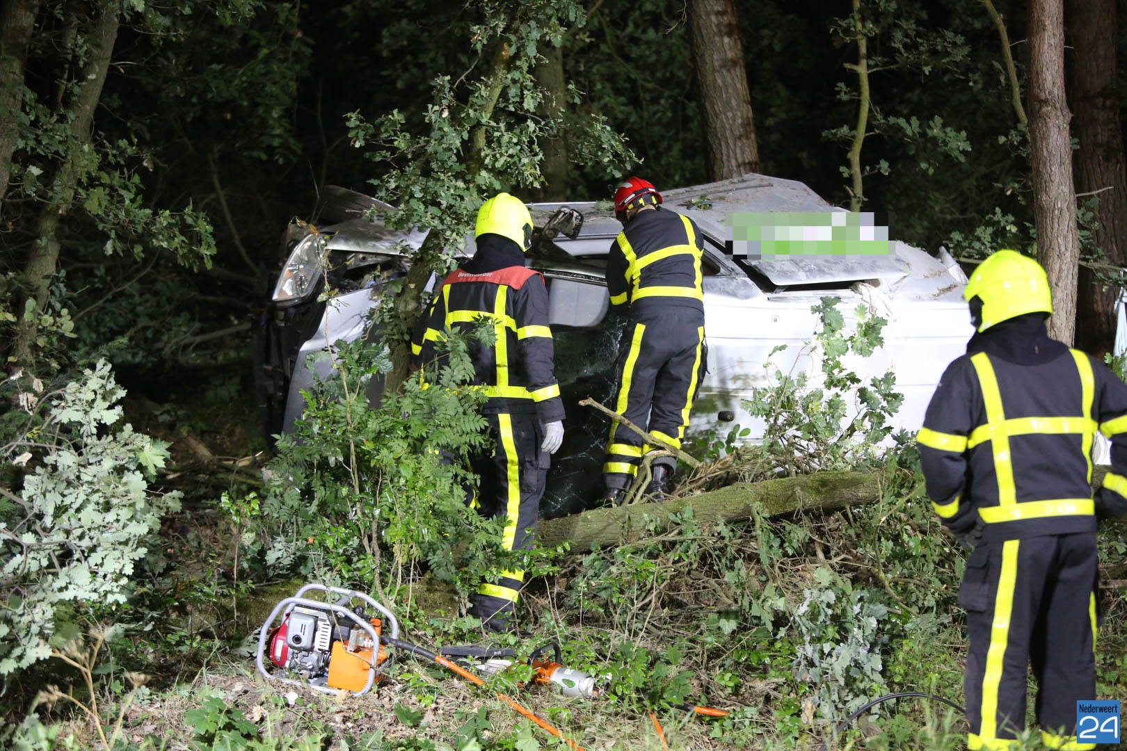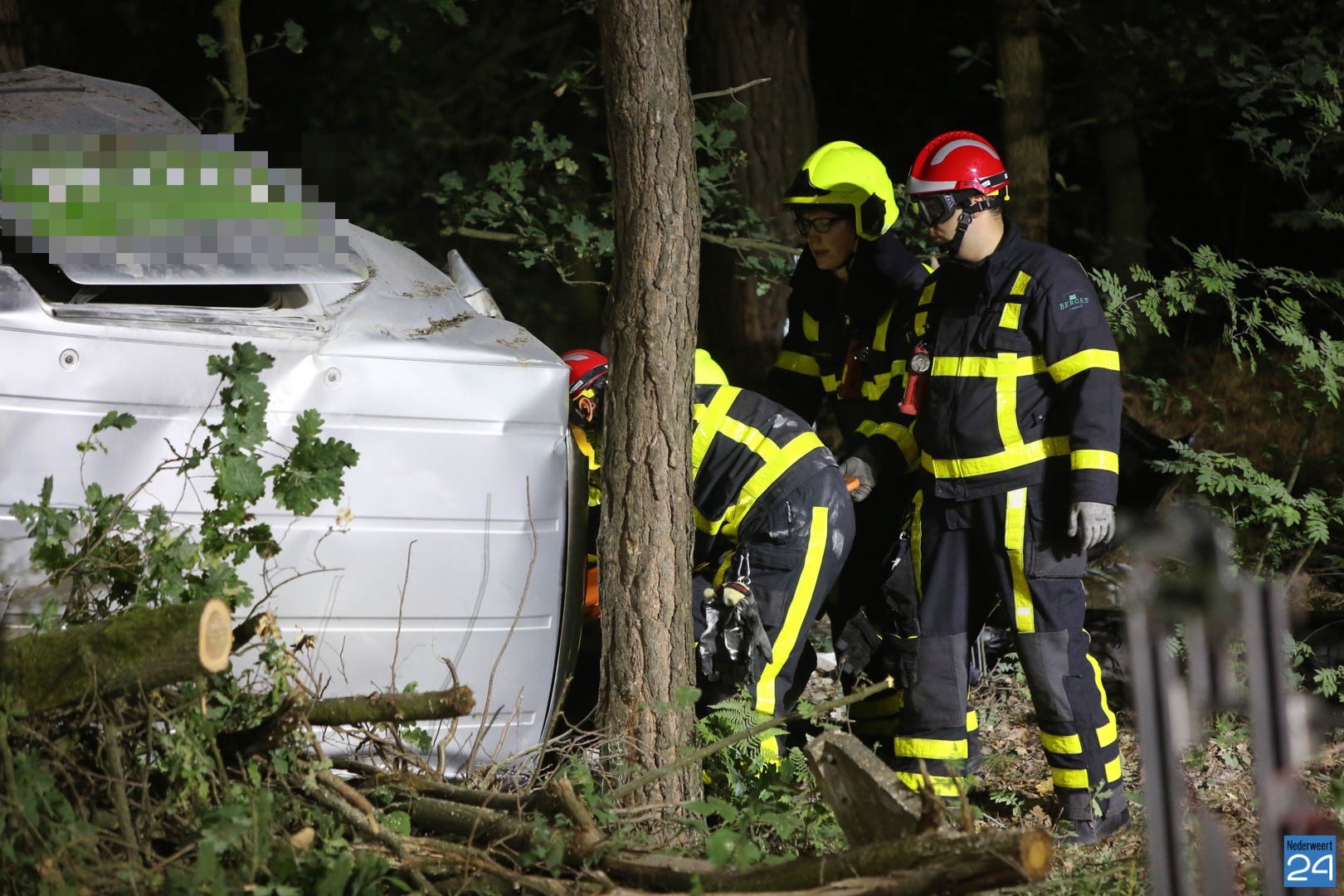 De automobilist is rechts naast de weg geraakt en waarschijnlijk door een stuurcorrectie de macht over het stuur verloren. De auto is links tegen een boom gereden en over de kop geslagen. Een voorbijganger zag een boom op de weg liggen en stopte. In de struiken zag hij toen het voertuig liggen en heeft direct de hulpdiensten gebeld.