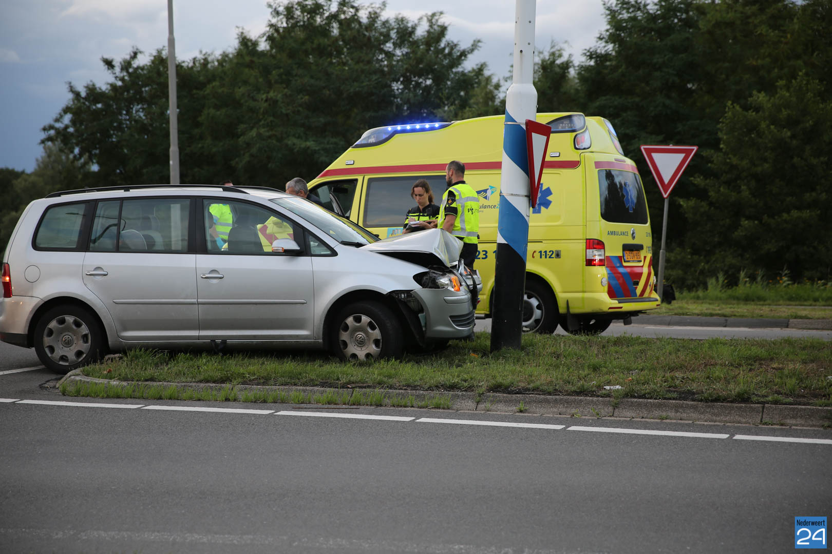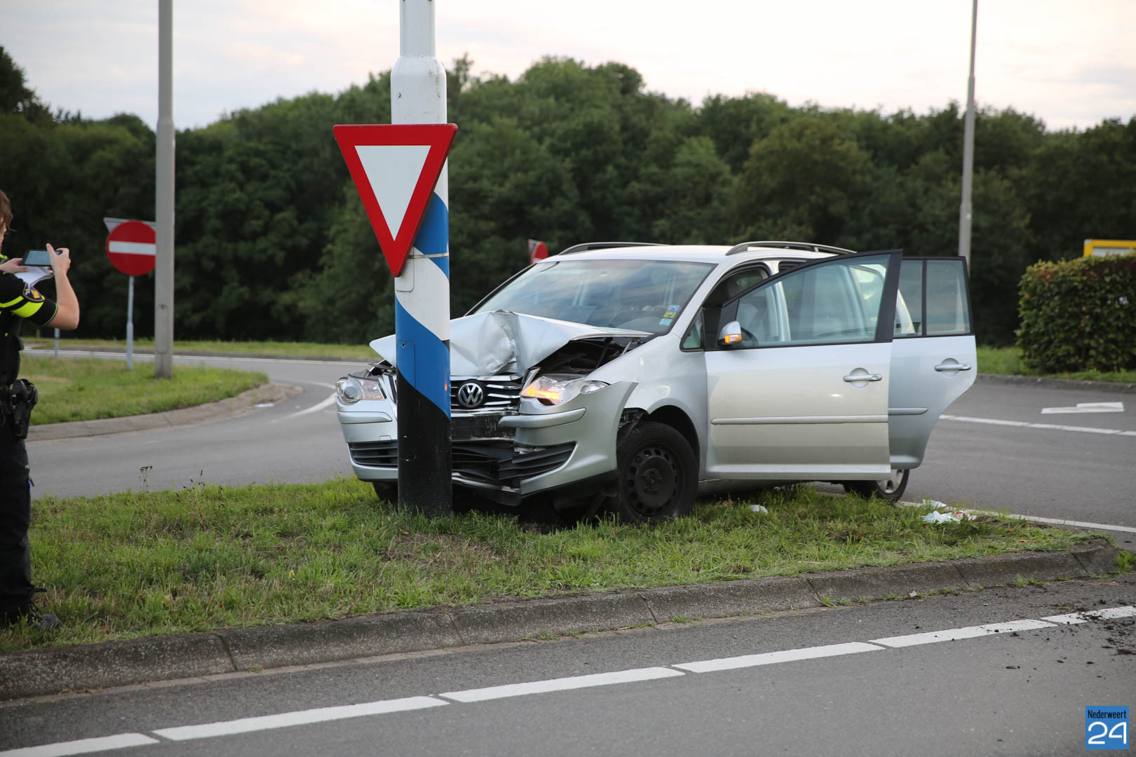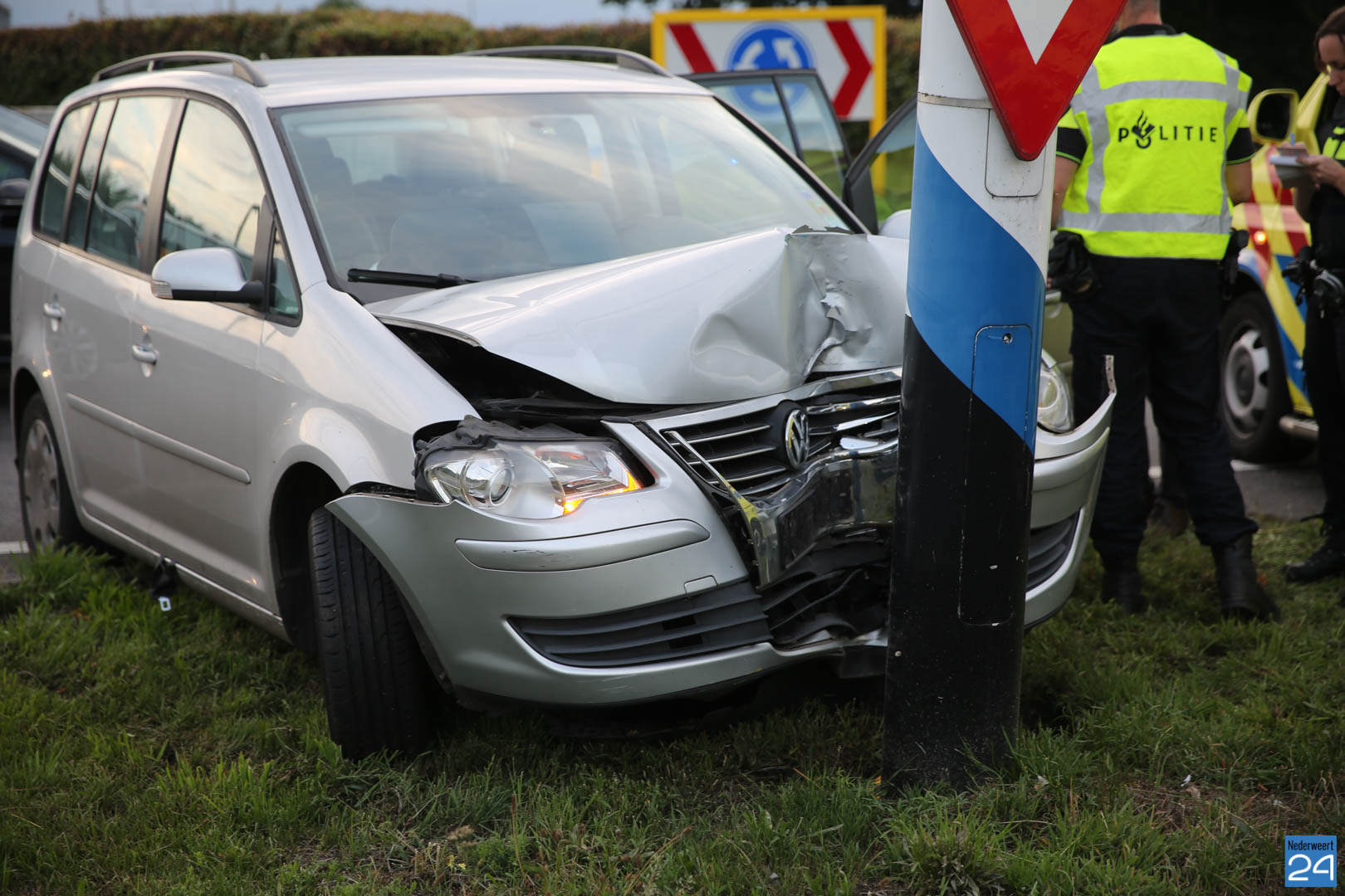 Zondagavond is een auto met hoge snelheid tegen een bewegwijzeringspaal aangereden op de Roermondseweg (N280) bij Weert. Hierbij raakten twee personen gewond.