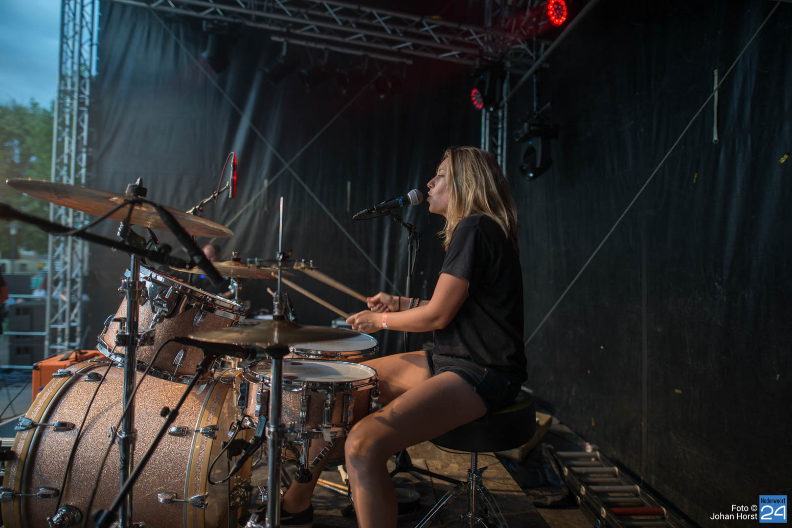 Ondanks het slechte weer trotseerden vele fans de regen voor de afsluiter van het Nederweerter festival. Toen het water echter met bakken uit de lucht kwam, ontstond er kortsluiting met desastreuze gevolgen. Danny Vera en zijn band hebben nog een paar nummers akoestisch geprobeerd te spelen maar dat was nauwelijks hoorbaar voor het publiek. Een mooi gebaar van deze sympathieke band, maar met helaas een veel te vroeg einde van wat een mooi optreden had moeten worden. Voorzitter Rolf Verheijen bedankte alle aanwezigen en had zich een heel andere einde voorgesteld. “Het weer heeft ons helaas op het laatst in de steek gelaten. Bedankt dat jullie er waren en bedankt aan alle vrijwilligers die dit festival weer mogelijk hebben gemaakt!