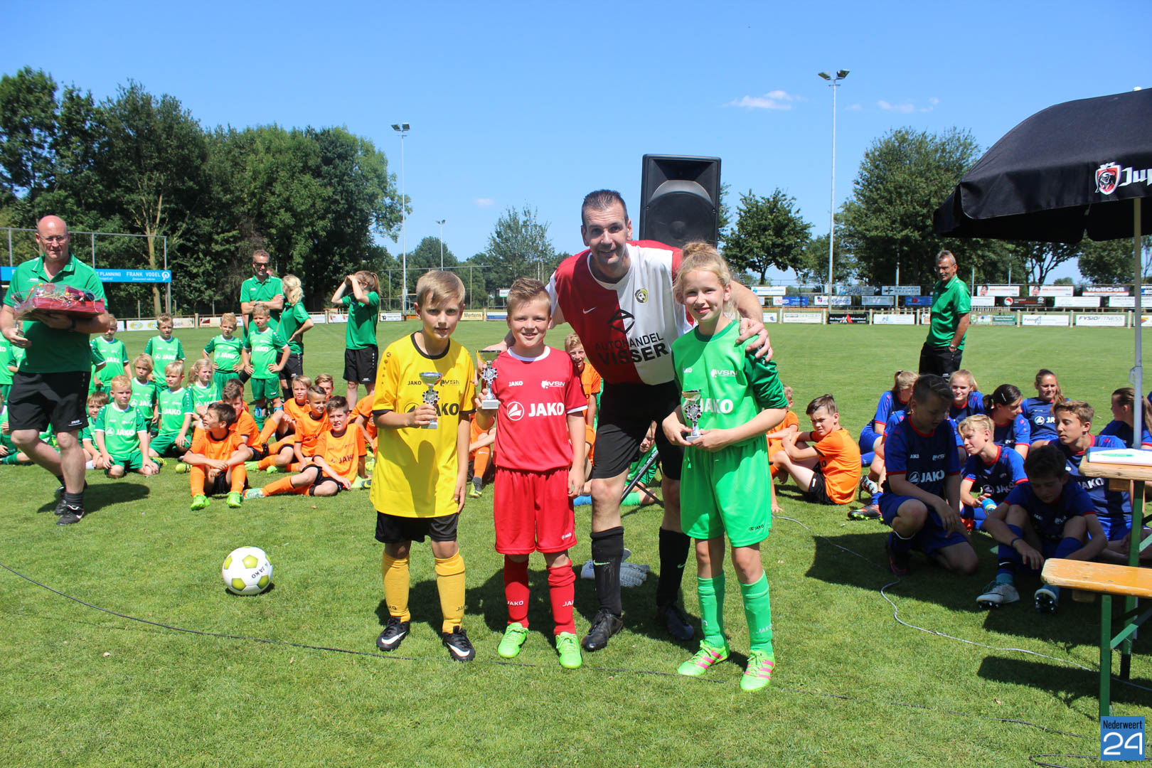 Vrijdagmiddag zijn de jaarlijkse Voetbaldagen bij de Eindse Boys in Nederweert-Eind voor de 17e keer succesvol afgesloten. Onder toeziend oog van heel veel papa’s en mama’s, opa’s en oma’s, familie, vrienden en bekende én onder toeziend oog van wethouder Henk Geraats werden vooral de vrijwilligers bedankt voor de tijd en energie die ze er jaarlijks insteken.