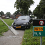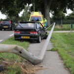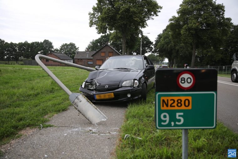 Het verkeer ondervindt weinig hinder omdat zowel auto als lantaarnpaal niet op de weg terecht zijn gekomen.