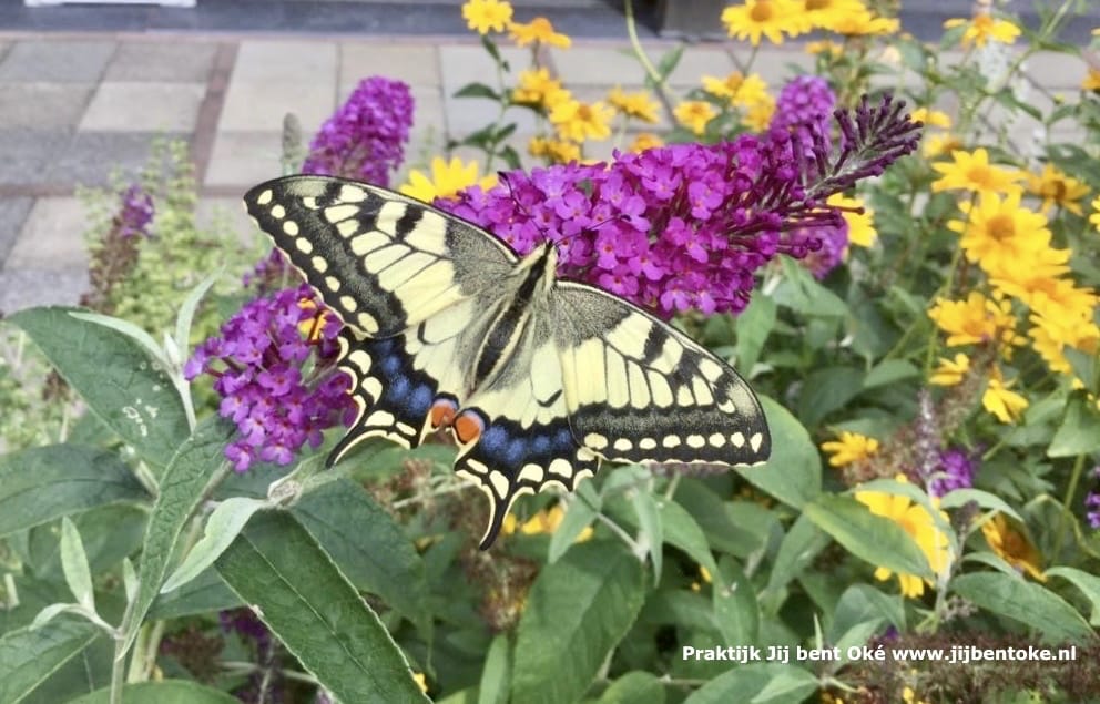 Ik was nog niet eerder op Bosserhof geweest en keek mijn ogen uit. Wat een rust en wat een bloemenpracht. Zodra de zon zich liet zien fladderen vlinders rond en zoemen bijen rond. Het rupsje werd voorzichtig in het vlinderhotel gelegd. Mooi om daar rond te wandelen op zondagochtend. Het leerpad dat er aangelegd is, is voor jong en oud interessant. Verrassend vond ik het koele donkere dennenbos. Daar kunnen heel wat rolstoelen en rollators tegelijk de koelte opzoeken op warme dagen.