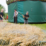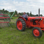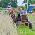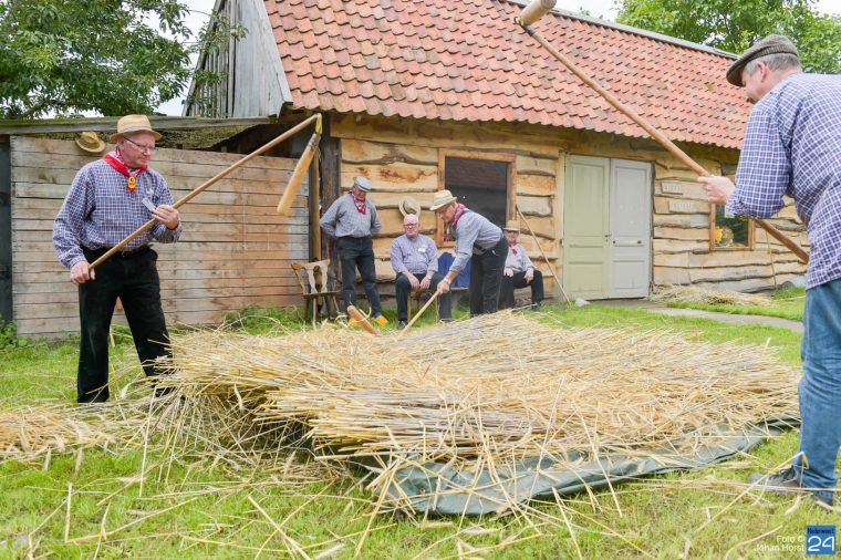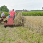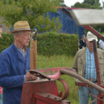 Ook werden de dorsmachines van stal gehaald om een stuk te maaien. Te zien waren een dorsmachine en lage drukpers, een getrokken maaidorser en een eendoeks-getrokken maaier. De kennis van de technische kennis van de machines is er, maar hoe ging het ook al weer. Een ambacht die het zeker verdiend om in eren te houden.