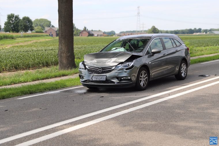 Ter hoogte van de Reijndersstraat botste allereerst een afdraaiende tractor tegen een personenauto aan. De tractor reed vanuit Baexem richting Kelpen-Oler en wilde de Reijndersstraat opdraaien. Hierbij heeft hij waarschijnlijk een auto die daar stil stond over het hoofd gezien. Gelukkig raakte niemand gewond, maar het kindje dat achterin zat, was flink geschrokken.