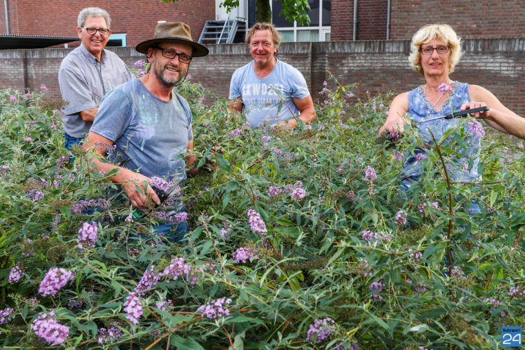 Vandaag is een delegatie van de Vlinderpaât op pad gegaan om de vlinderstruiken te ontdoen van uitgebloeide bloemen. Hierdoor kunnen er weer nieuwe bloemen uitspringen en wordt het bloeiseizoen aanzienlijk langer.