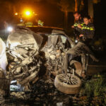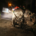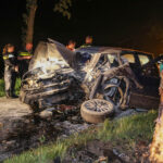 De bestuurder was onderweg naar huis toen hij de macht over het stuur verloor. Hij botste frontaal rechts van de weg tegen een boom waarna de auto in brand vloog. Een vriend van hem zag het ongeval gebeuren in de achteruitkijkspiegel van zijn auto. “Er lag wat gras op de weg en daardoor raakte hij in de slip“, vertelt de man. De bestuurder is door zijn vriend uit de auto gehaald. Door de impact is de auto gaan branden. Met een brandblusser was dit beginnend brandje snel geblust.