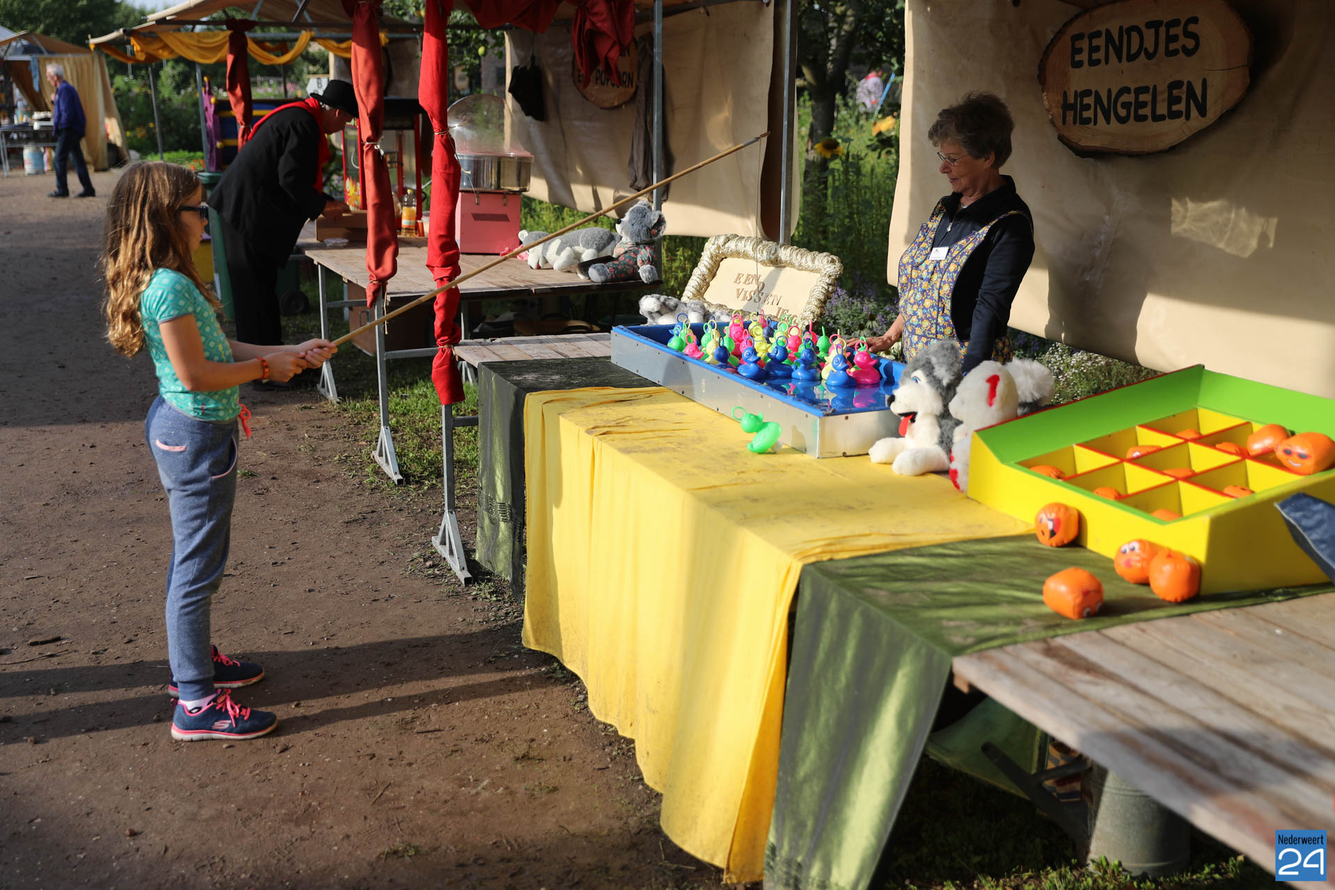 Voor een dubbeltje kun je ballen gooien, eendjes hengelen, drie op een rij spelen of graaien in de grabbelton. Ook de ouderwetse katapult en de Kop van Jut ontbreken niet. Evenals de waarzegster in een pipowagen, de suikerspin en de mini schietbaan die beschikbaar is gesteld door de schutterij St. Lucie van Nederweert-Eind. De snoepwagen wordt drie dagenlang bemand door leden van toneelgroep Koldriek uit Heel. Verder verandert het schooltje in een bruin café en zorgt Arie-Ja uit Meijel voor live muziek. Per attractie ontvangen de kinderen waardepunten, die ze later kunnen inwisselen voor een verrassing.