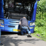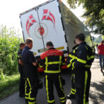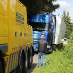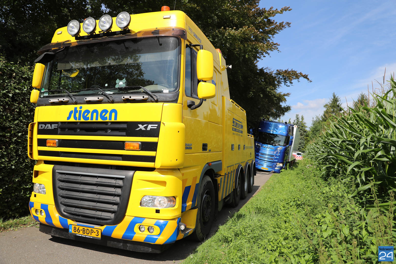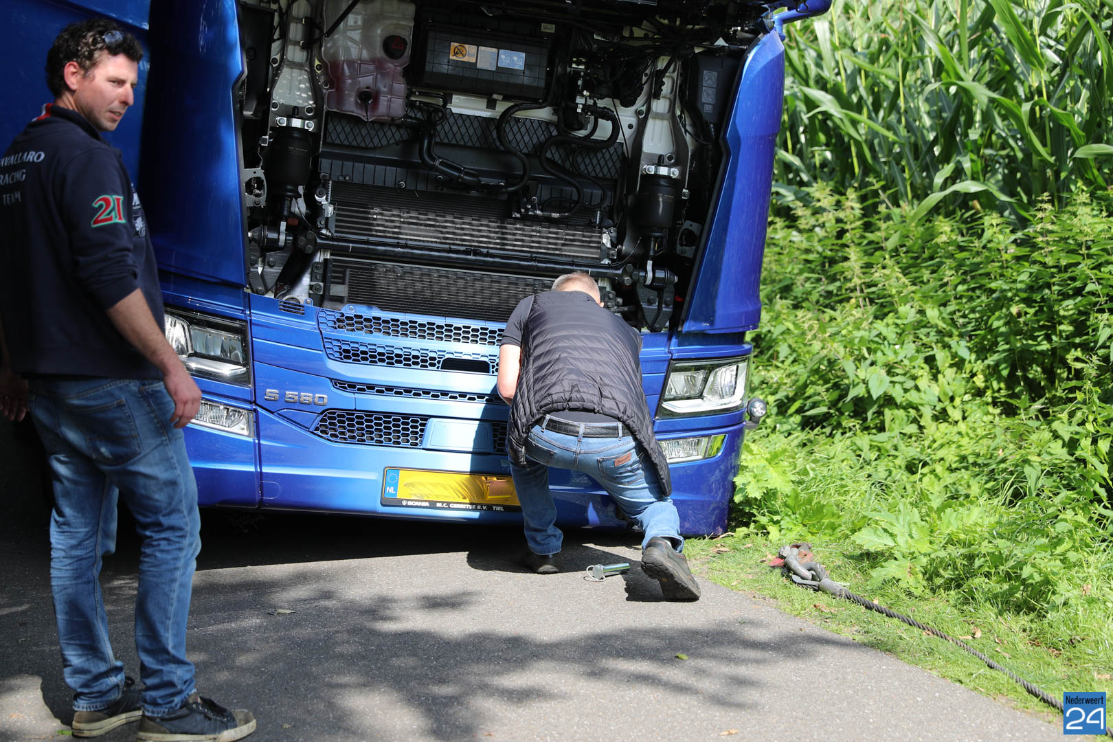 Gelukkig bleef de man kalm, zette de motor uit en verliet het voertuig. De brandweer kwam ter plaatse maar kon weinig voor de vrachtwagenchauffeur betekenen. De berger heeft de vrachtwagen met oplegger recht gezet waarna hij zijn weg kon voortzetten.