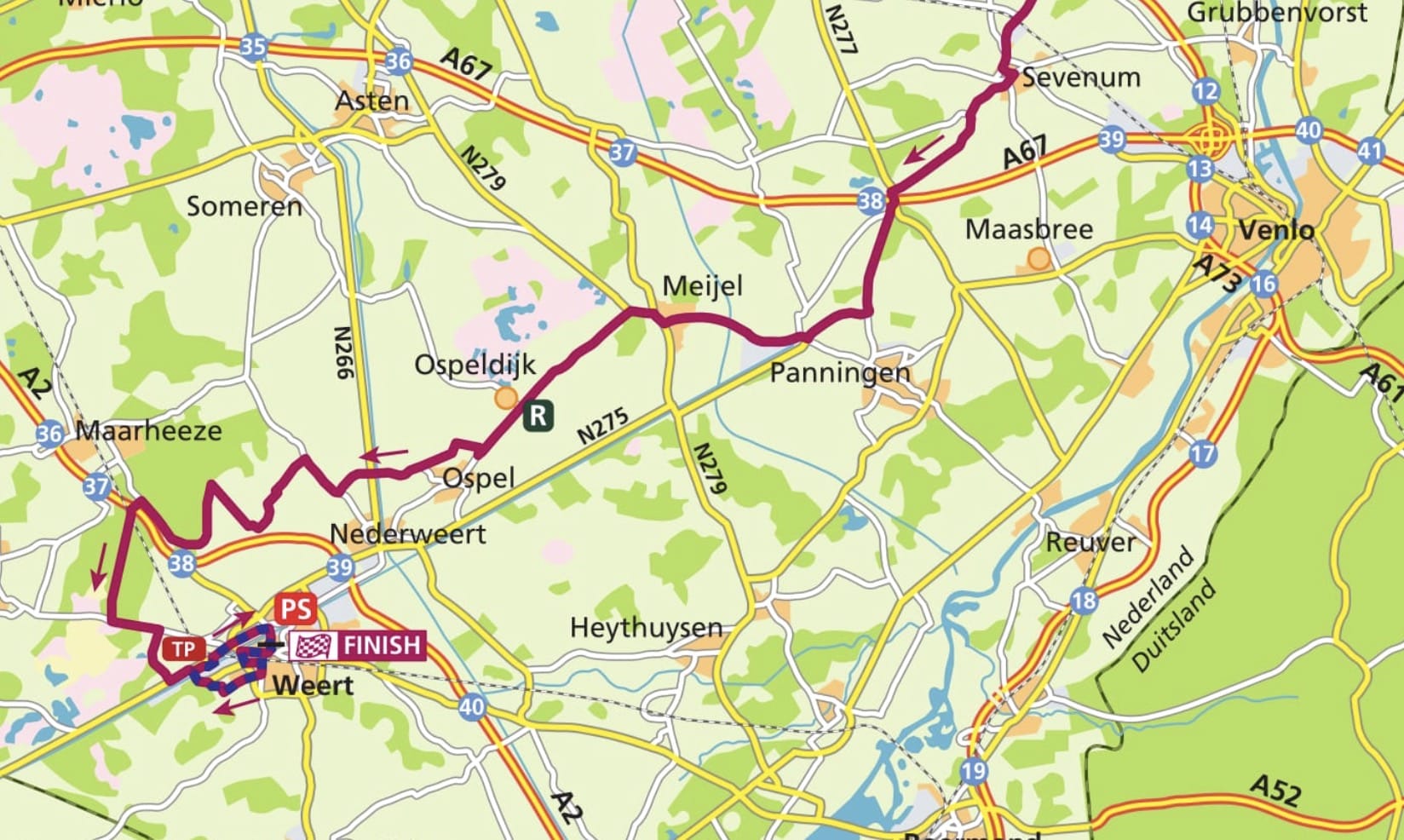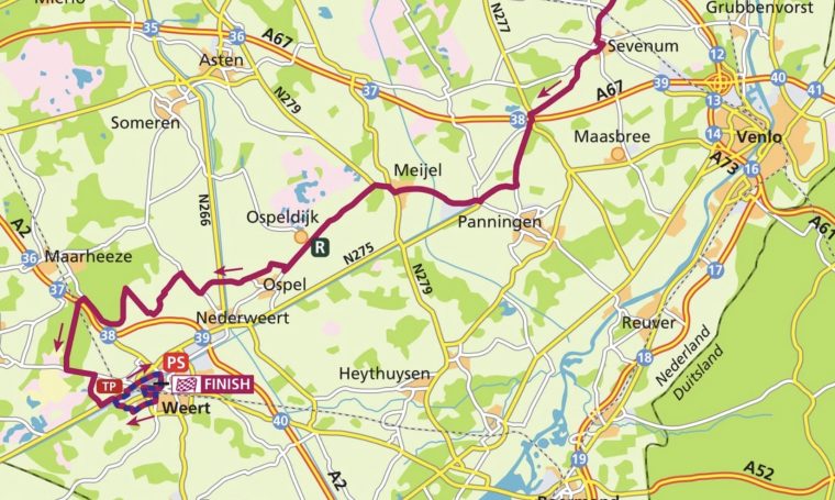 Op vrijdag 1 september komen de eerste rensters van de Tour rond 16.00 uur in Weert aan. Zij fietsen daarna nog enkele rondes op een parcours van 8,4 km. met eindpunt aan de Wilhelminasingel. Die route gaat vanaf de Wilhelminasingel over de Driesveldlaan, Parallelweg, Louis Regoutstraat, Kerkstraat, Keulerstraat, Parklaan, Diesterbaan, IJzerenmanweg, Voorhoeveweg, Kazernelaan, Industriekade, Energiestraat, Beekpoort en Wilhelminasingel. Dit betekent dat deze wegen vanaf ca. 16.00 tot 17.15 uur afgesloten zijn voor alle verkeer. Voor de Wilhelminasingel geldt dat alleen de buitenzijde van de singel is afgesloten, waardoor de binnenstad bereikbaar blijft. In verband met de opbouw en inrichting van de finish-locatie is dit deel van de Wilhelminasingel tussen Beekpoort en Driesveldlaan al vanaf 10.00 uur afgesloten. Aanwonenden hebben hierover een brief ontvangen.